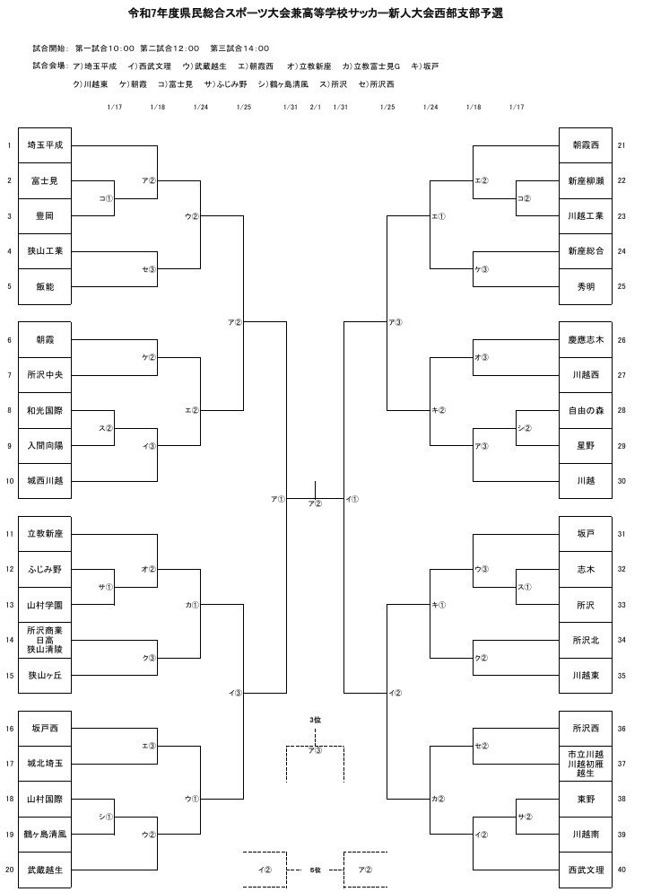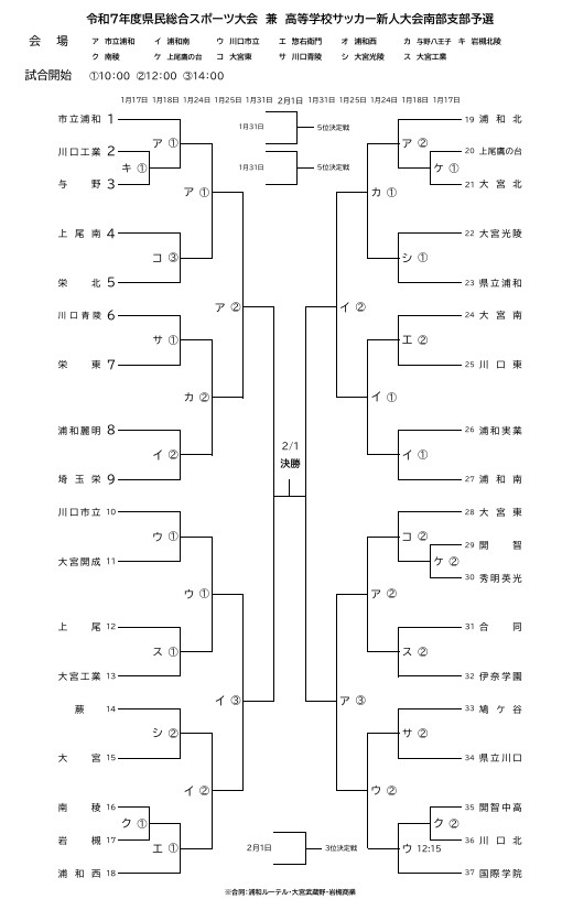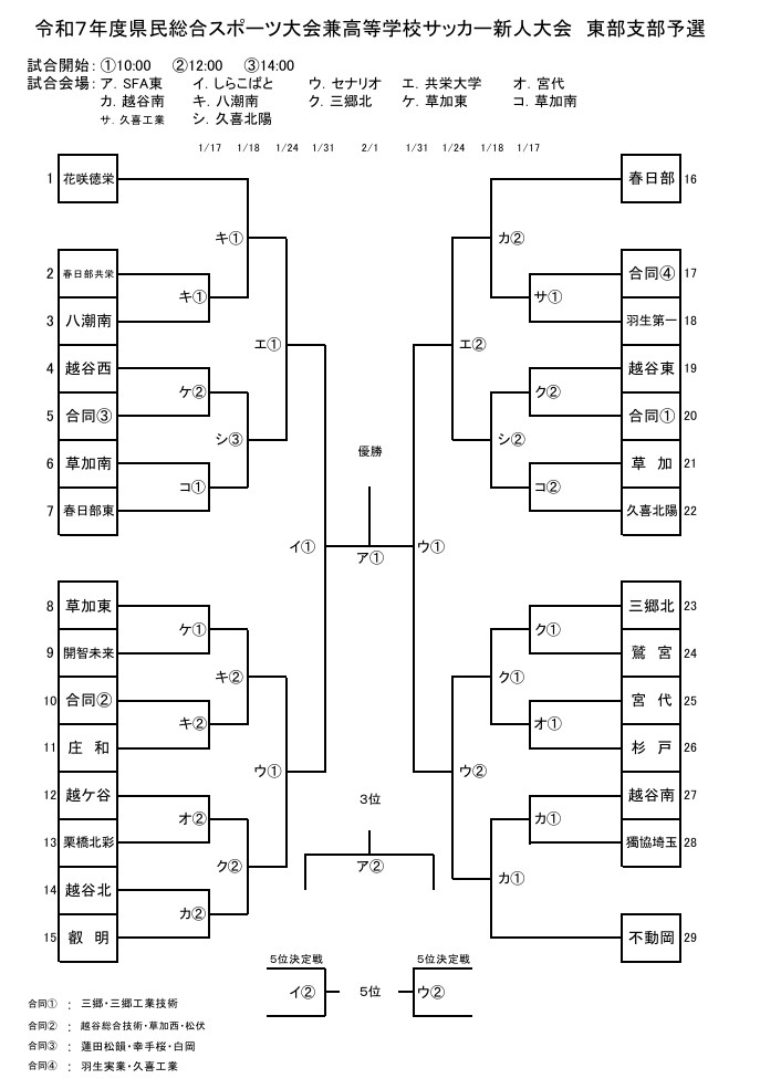 埼玉県 高校サッカー新人大会 支部予選の組み合わせ