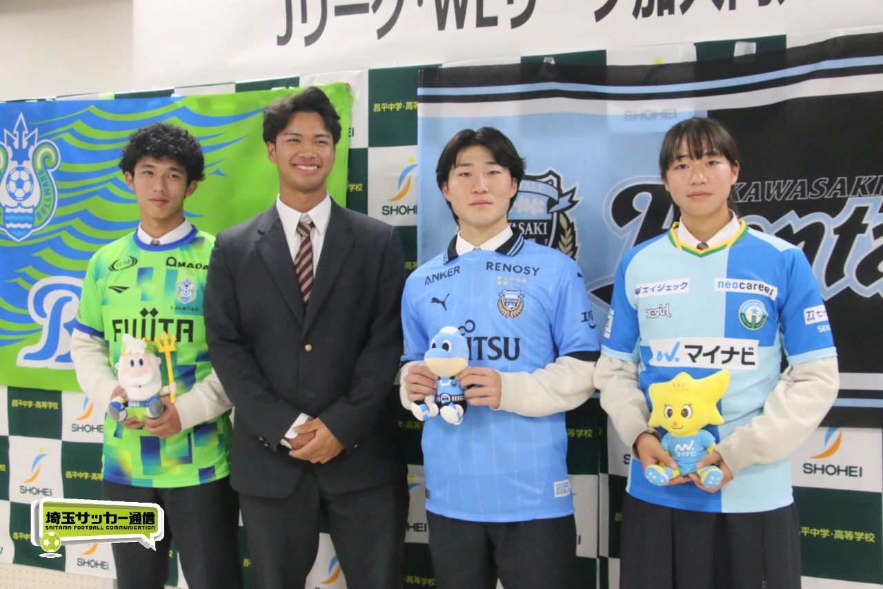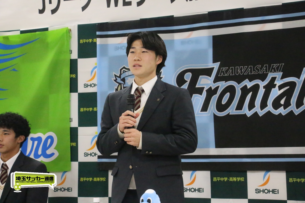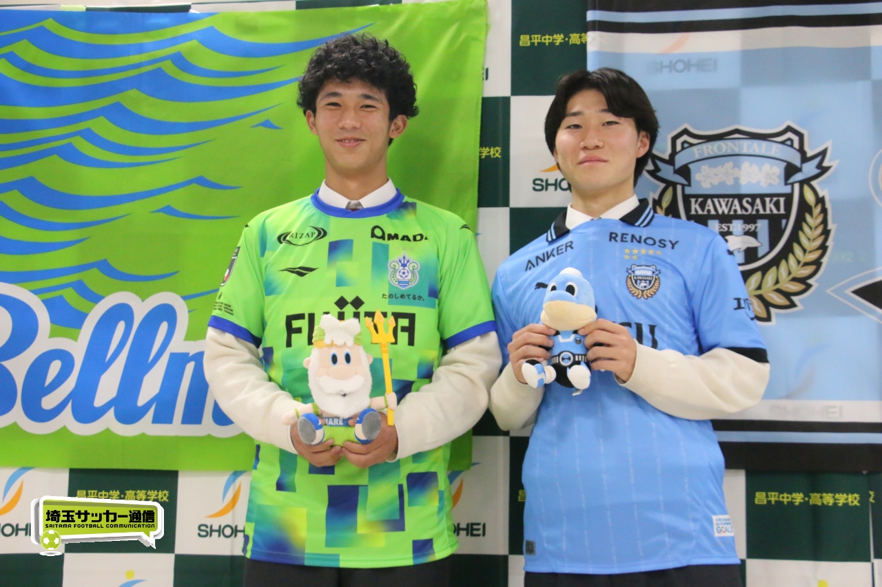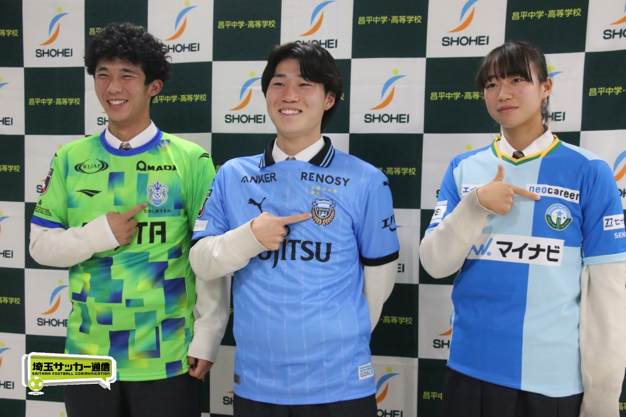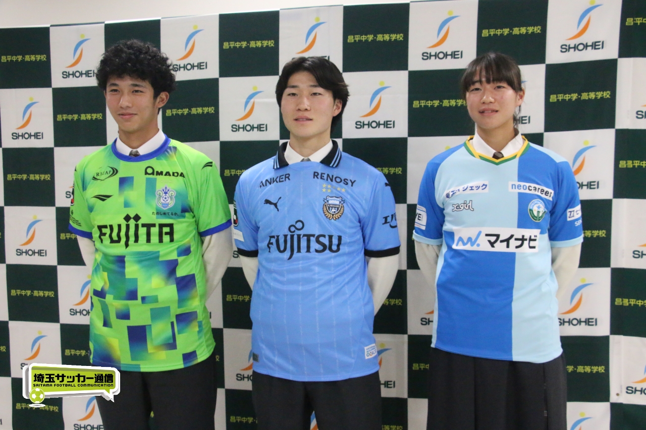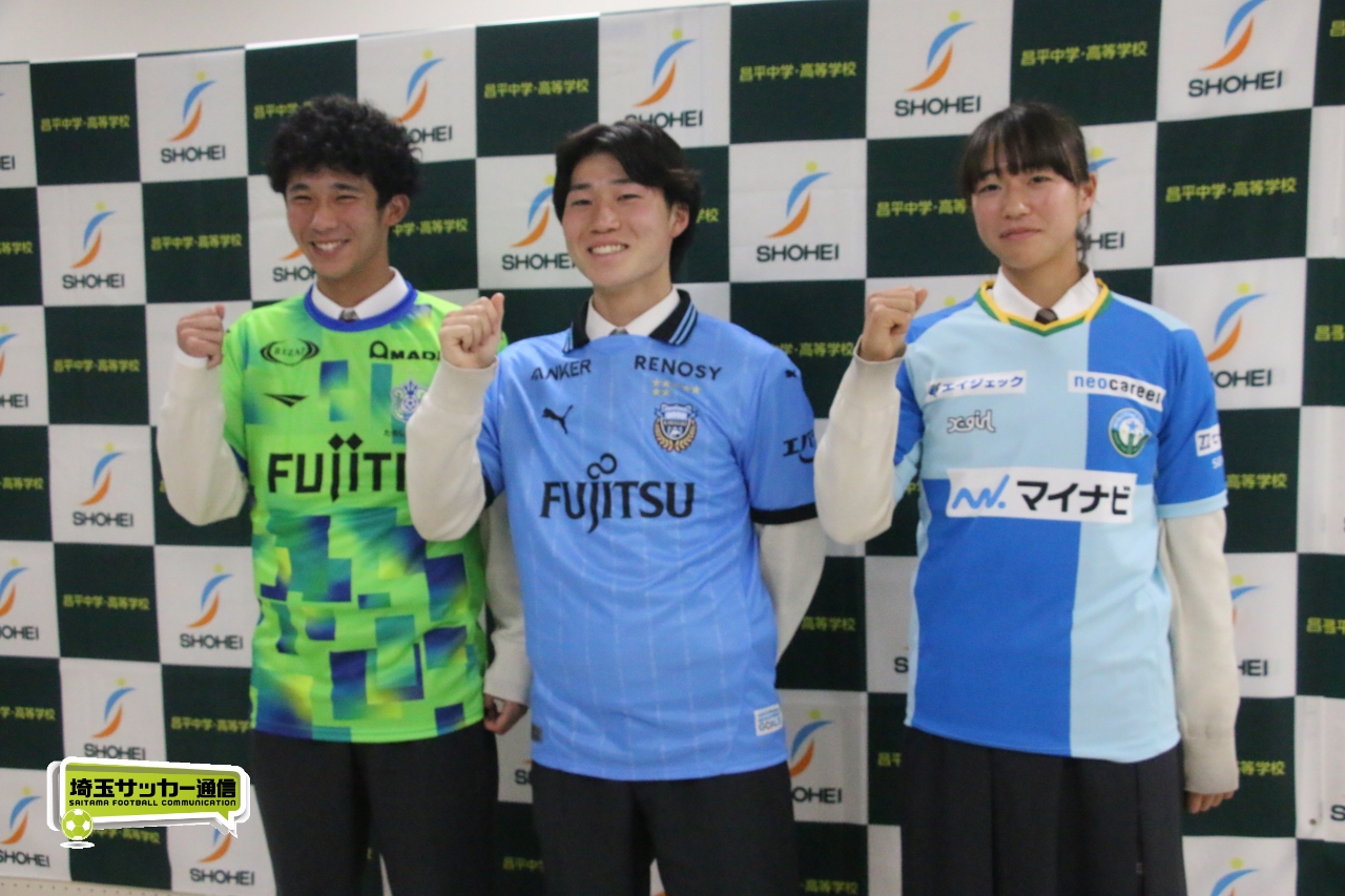 昌平高サッカー部は22日、杉戸町の同校にて「Jリーグ・WEリーグ加入内定者合同記者会見」を行った。男子サッカー部からは湘南ベルマーレ内定のMF山口豪太(3年)、川崎フロンターレ内定のMF長璃喜(3年)、女子サッカーからはマイナビ仙台レディース内定のFW松井美優(3年)のほか、学校関係者や加入内定チーム代表者が出席。各選手が将来の抱負などを語った。