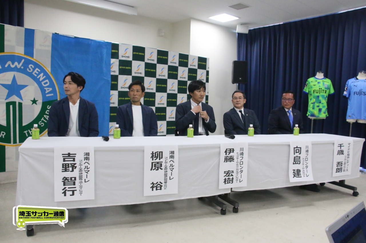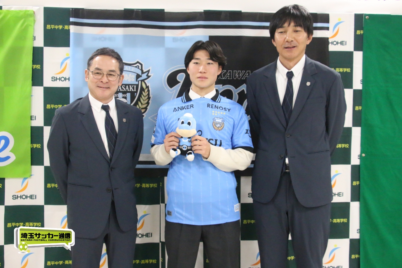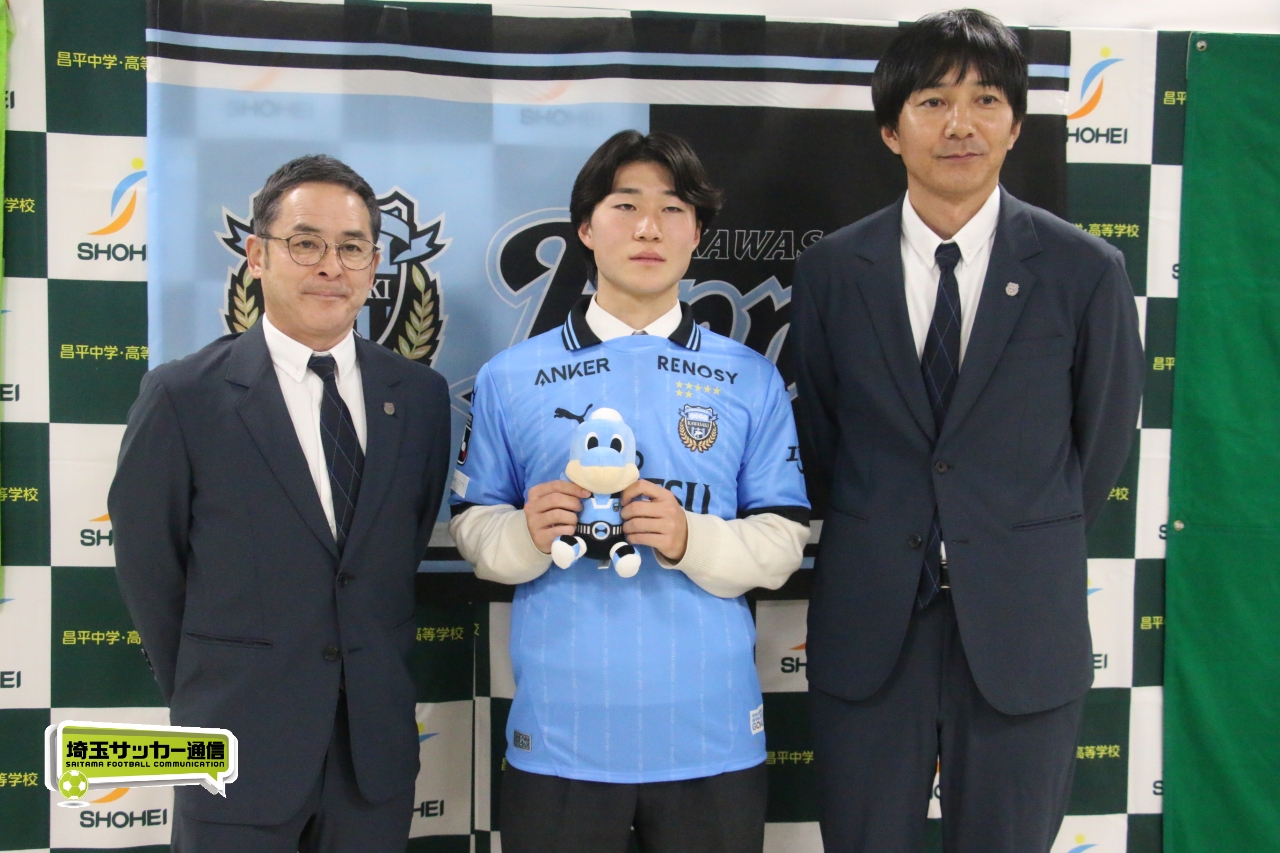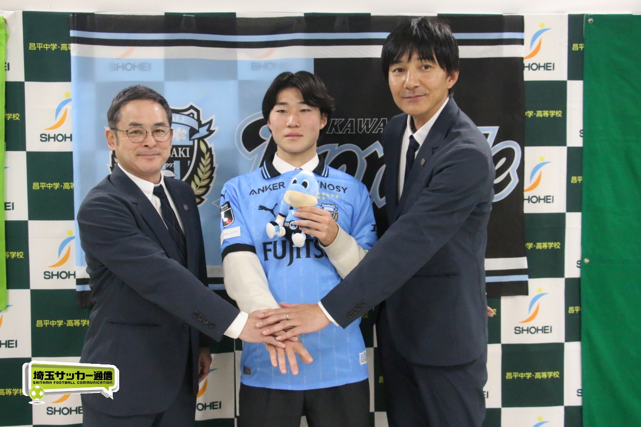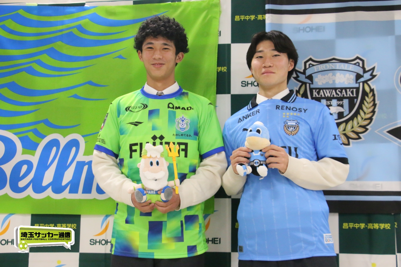 昌平高サッカー部は22日、杉戸町の同校にて「Jリーグ・WEリーグ加入内定者合同記者会見」を行った。男子サッカー部からは湘南ベルマーレ内定のMF山口豪太(3年)、川崎フロンターレ内定のMF長璃喜(3年)、女子サッカーからはマイナビ仙台レディース内定のFW松井美優(3年)のほか、学校関係者や加入内定チーム代表者が出席。各選手が将来の抱負などを語った。