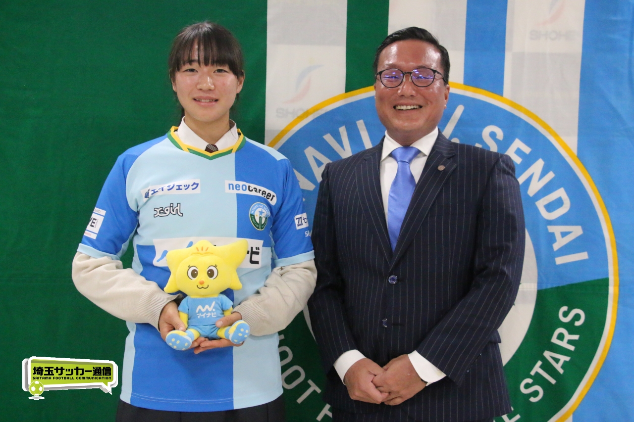 女子サッカー部からは、エースストライカーの松井が仙台に加入が内定。同校初のWEリーガー誕生となった。スカウト担当の千歳吾朗氏は、松井とのインパクトのある出会いを明かす。
