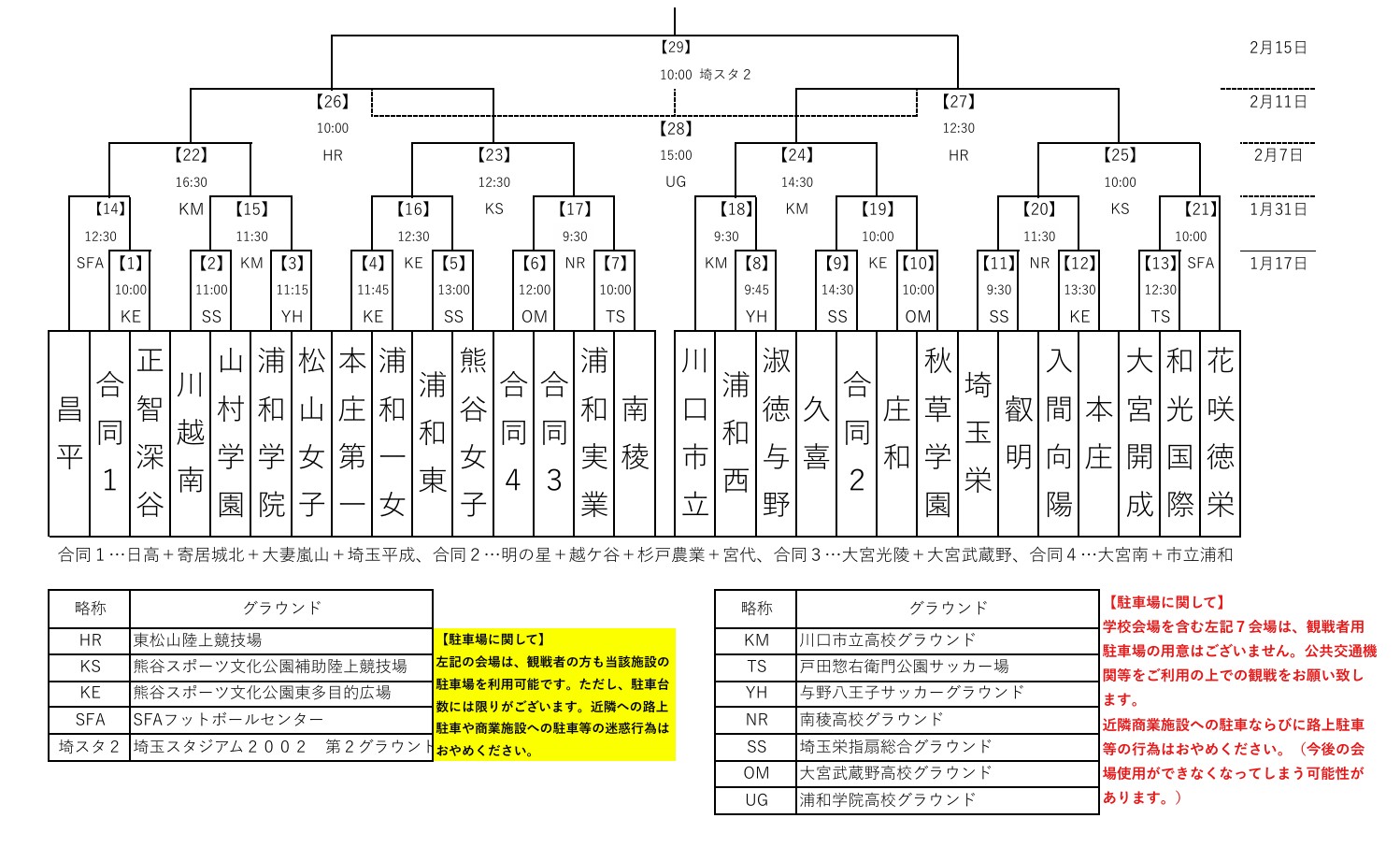 令和7年度 埼玉高校女子サッカー新人大会トーナメントの組み合わせ