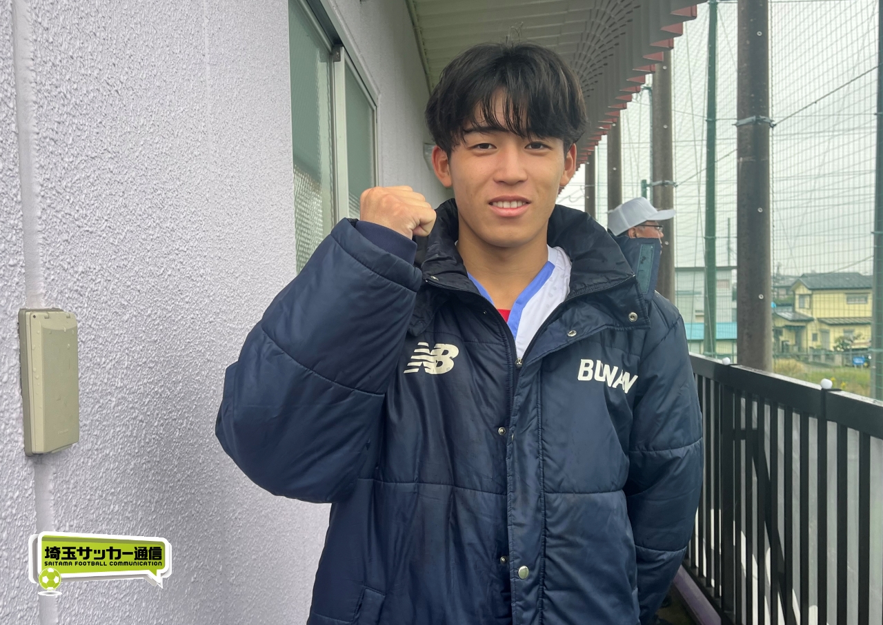 初戦となった2回戦の大宮東戦ではまさかの先制点を許す展開だった中で、34分から右SHで出場すると、その3分後に同点ゴール。MF平野琉斗(3年)主将がボールを持つと、「琉斗が真ん中でボールを受けた時にバックラインが揃っていたので」と斜めへのランニングで抜け出し。平野からのパスを引き出すと、最後はループシュート気味に決めて嫌なムードを払拭した。