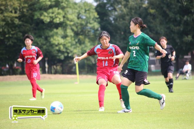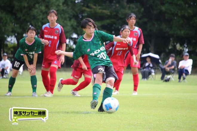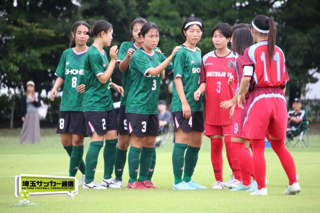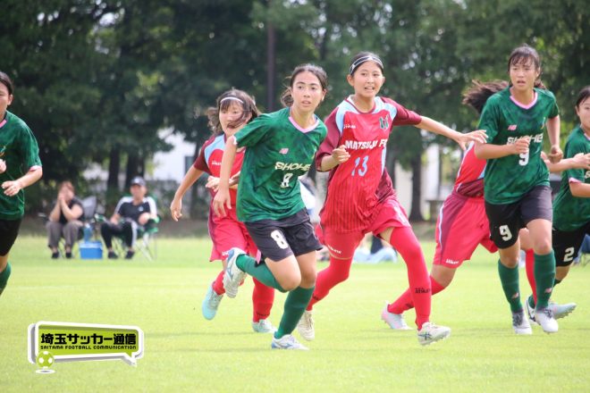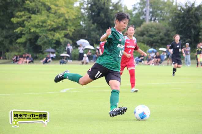 [女子選手権]昌平、松山女子に8発快勝で準決勝へ。後半に相手の堅守を攻略し一挙6得点 2025年9月28日 (日) 熊谷スポーツ文化 公園東多目的広場 主催: 埼玉県サッカー協会 2025.10.01 text 石黒登 カテゴリ: 女子サッカー pickup_photo • 昌平 • 松山女子 Twitter FB Hatena LINE 令和7年度埼玉県高校女子サッカー選手権大会準々決勝が9月28日に行われ、昌平と松山女子が対戦。大会連覇を狙う昌平が後半に一挙6得点を奪うなど8-0で快勝し、準決勝に進出した。