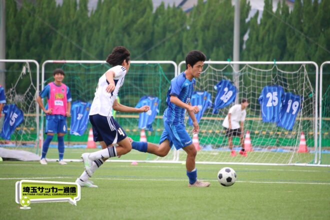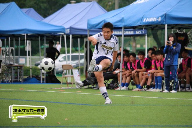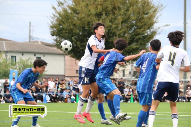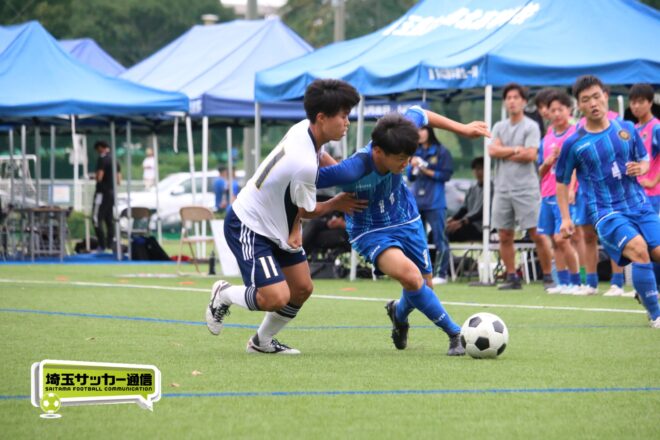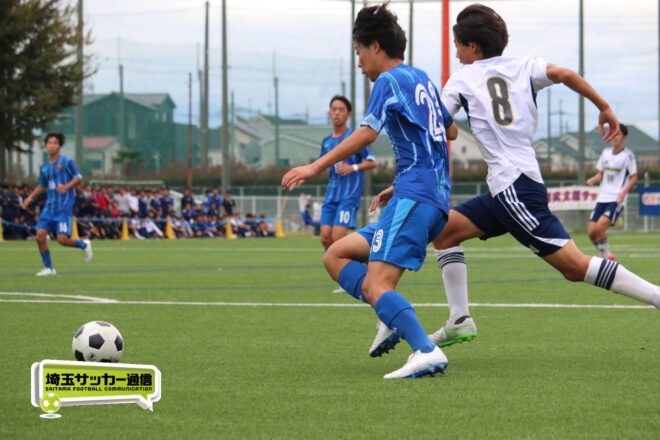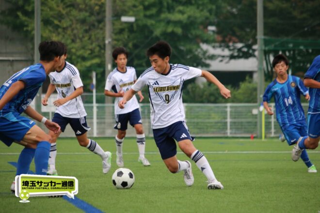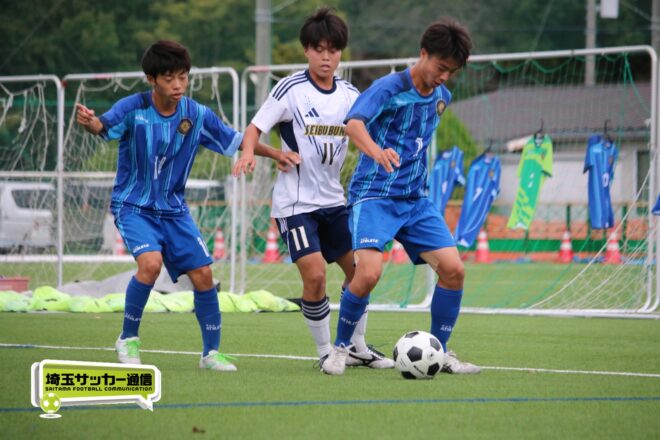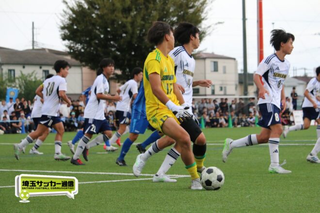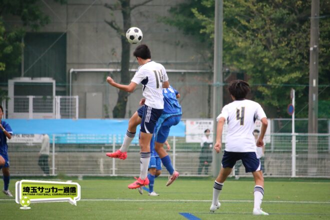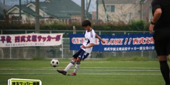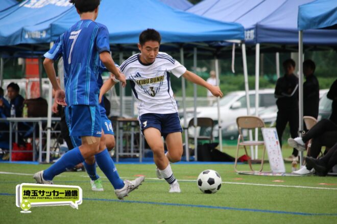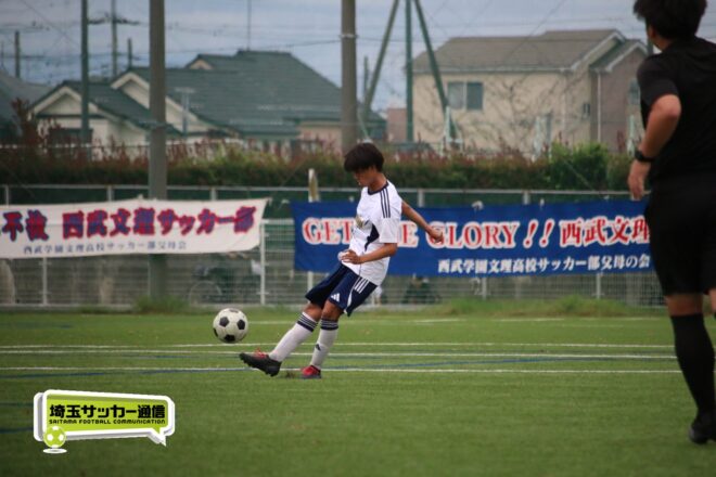 西武文理も23分、MF高倉由翔(1年)のクロスを永井がスルーし宮下がシュート。浦和北は25分、右サイドで連動し、FW瀨川祐樹(3年)が触れば1点というクロスを見せる。西武文理は35分、永井のロングスローからMF武田恵輔(2年)のヘディングが惜しくも上に外れた。