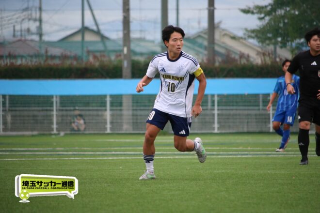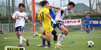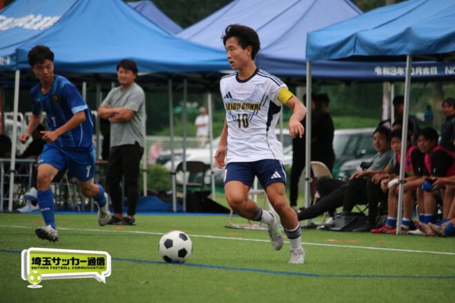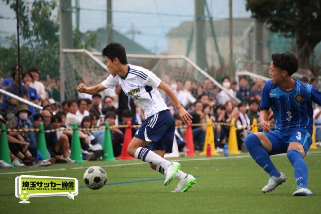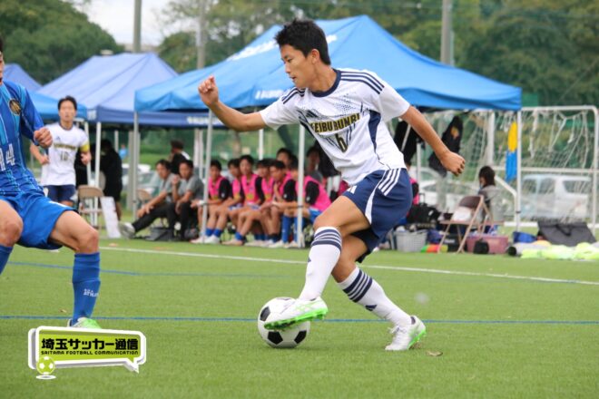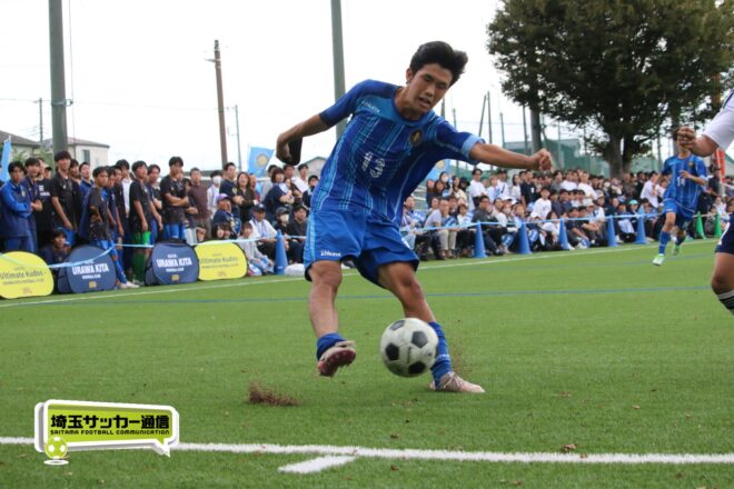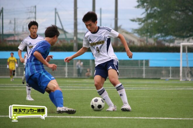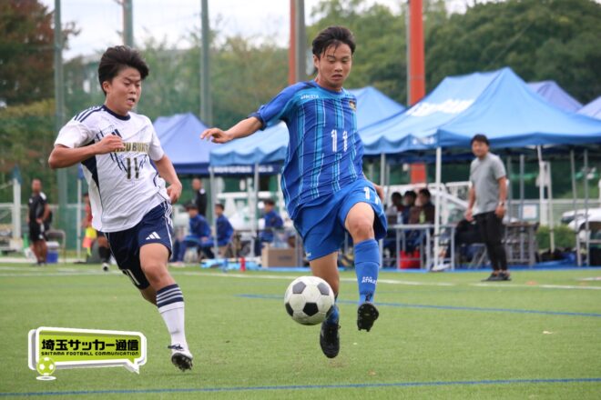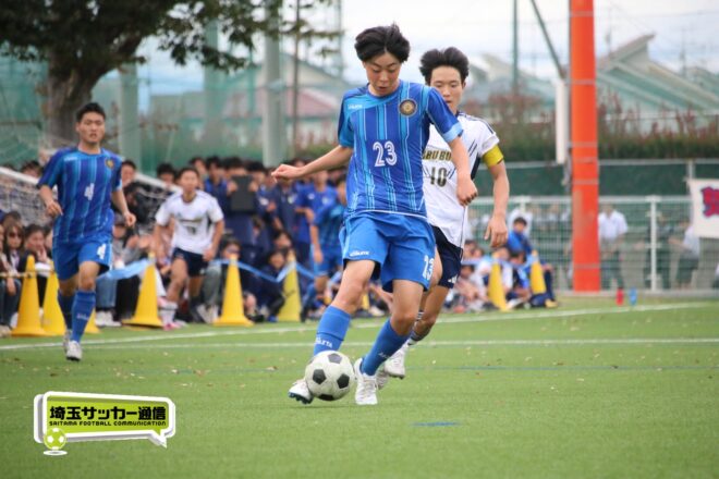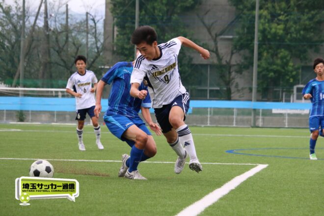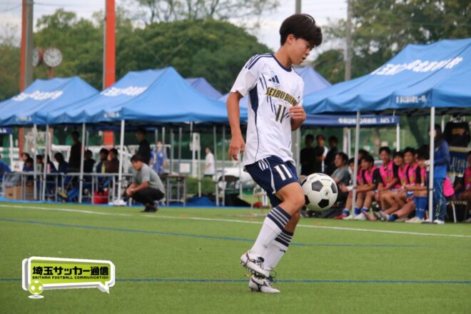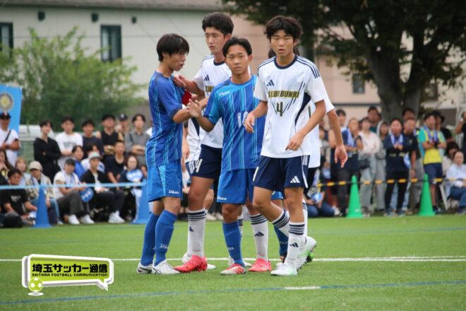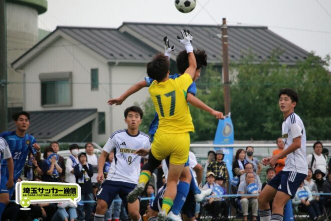 西武文理も23分、MF高倉由翔(1年)のクロスを永井がスルーし宮下がシュート。浦和北は25分、右サイドで連動し、FW瀨川祐樹(3年)が触れば1点というクロスを見せる。西武文理は35分、永井のロングスローからMF武田恵輔(2年)のヘディングが惜しくも上に外れた。