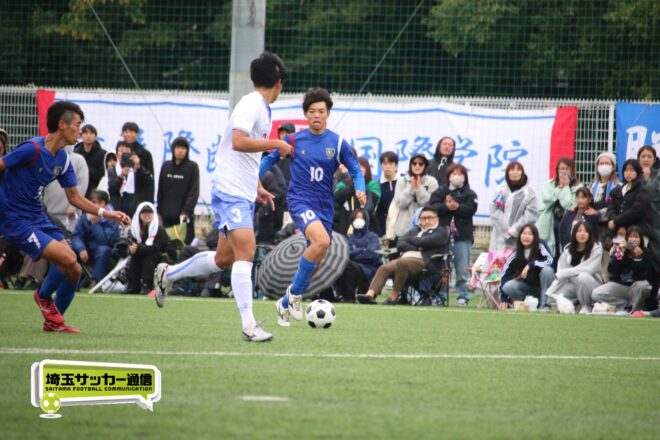 国際学院は後半チャンスを作る中で、なかなか決めきることができていなかったが、それでも28分、途中出場の左SB鈴木颯也(3年)のアーリークロスを渡邉が中央でしっかりと収め、ラストパス。これに抜け出したMF松本虎太郎(3年)が左足シュートでゴールネットを揺らした。
