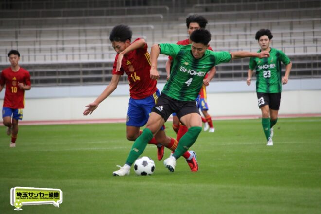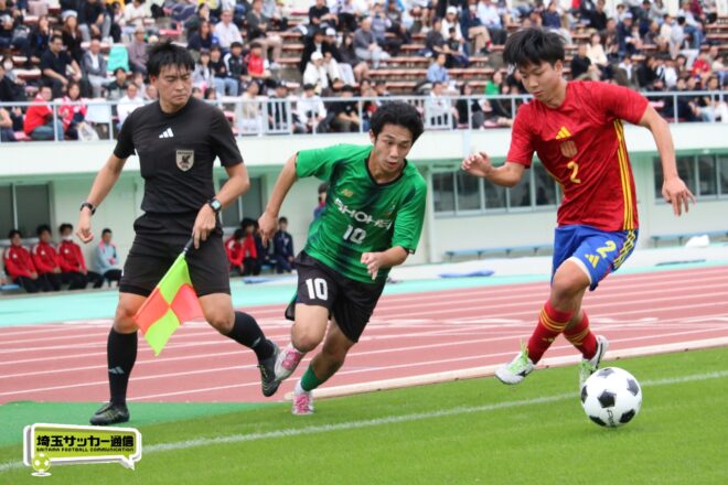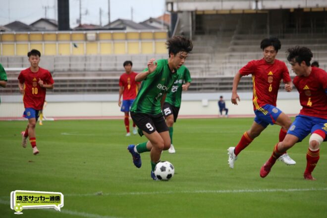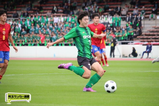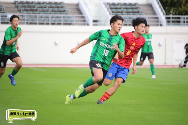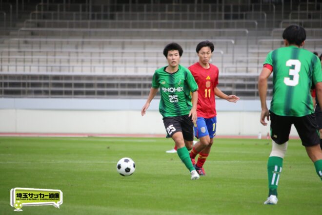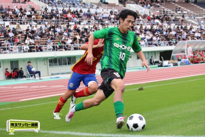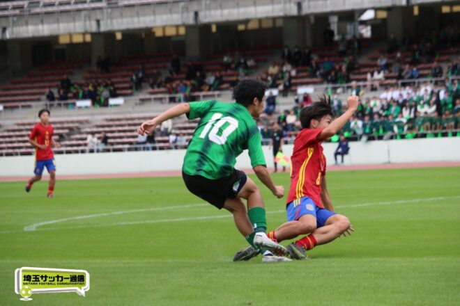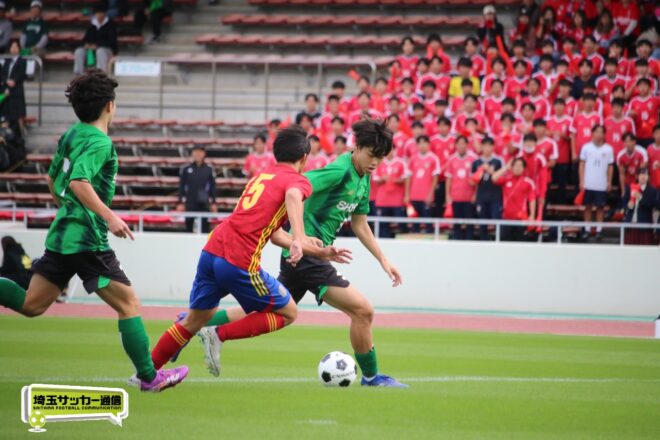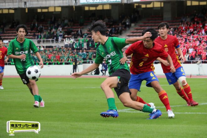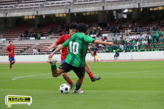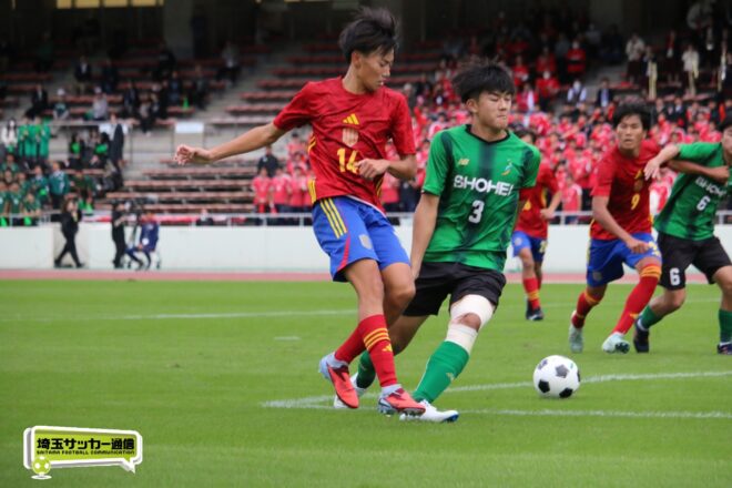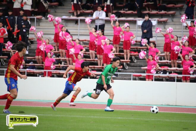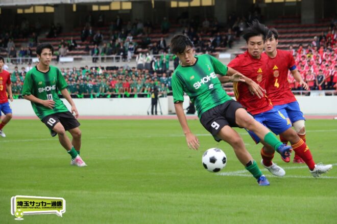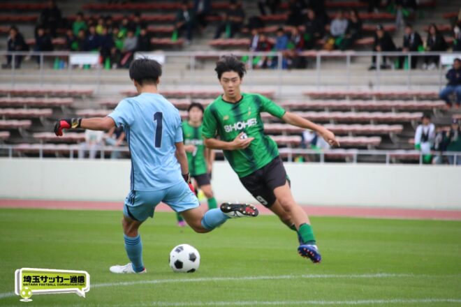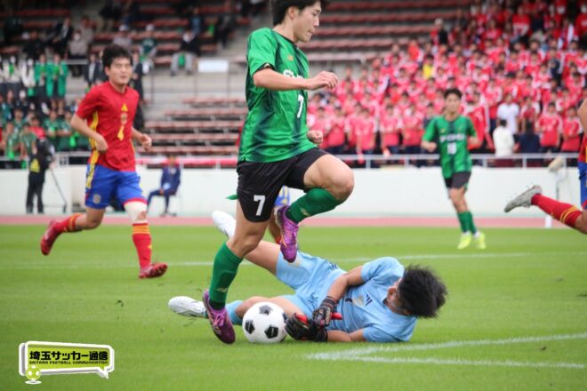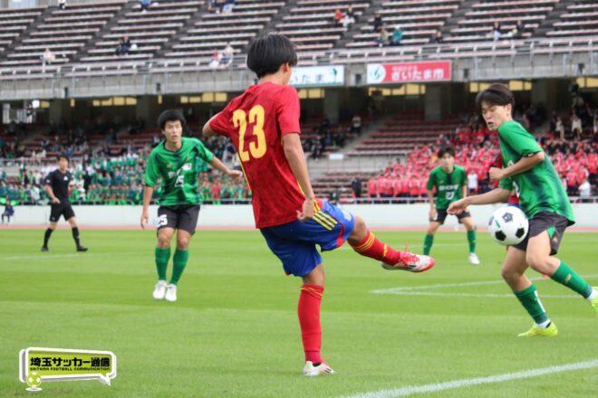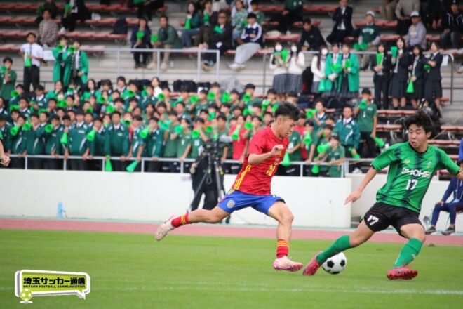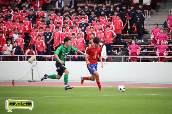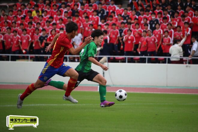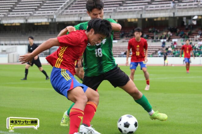 一方、昨年大会準優勝で、今回は3回戦で前回決勝で敗れた正智深谷を下してこのステージに進出した浦和学院も個の強さを見せる昌平に対し、グループで繋がった守備で相手の攻撃を個々に分断。攻撃では後ろからしっかりと繋いで相手を引き出し、サイドに展開して攻撃を仕掛ける。