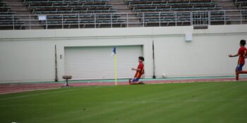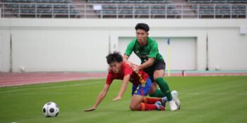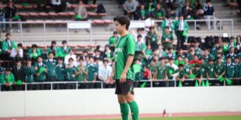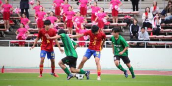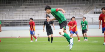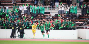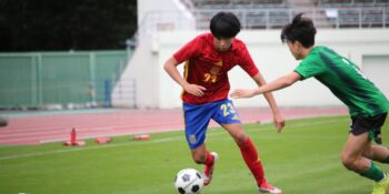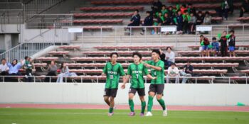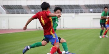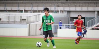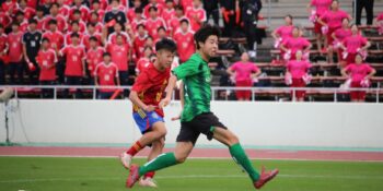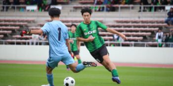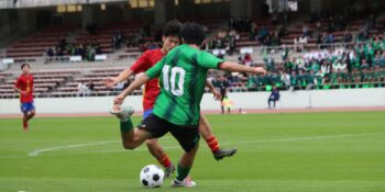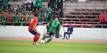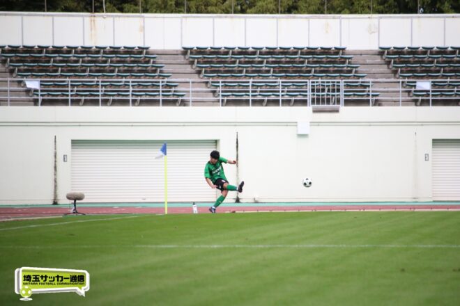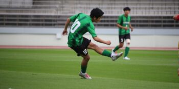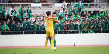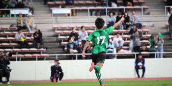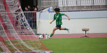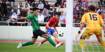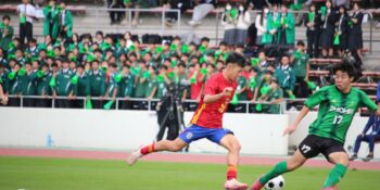 14分、MF髙見澤光(2年)からのパスを中央で受けた長が、立野との絶妙なワンツーでゴール前に抜け出し。さらに間髪入れずに来た相手DFのスライディングを交わすと、バランスを崩してやや右側に流れながらも身体を捻りながら右足でファーを打ち抜くゴラッソで同点とした。
