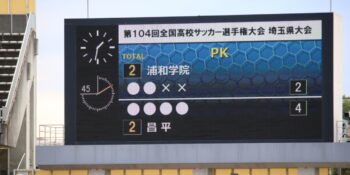 昌平が苦しみながらも初戦を突破した。第104回全国高校サッカー選手権埼玉県予選準々決勝1日目が1日に浦和駒場スタジアムで行われ、夏の王者で2大会ぶり7度目の優勝を狙う昌平が2-2からのPK戦の末に浦和学院に勝利した。昌平は9日の準決勝で成徳深谷と対戦する。
