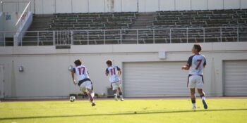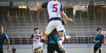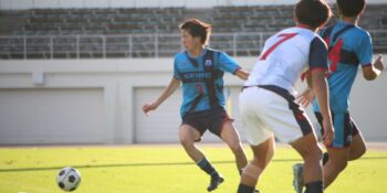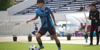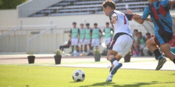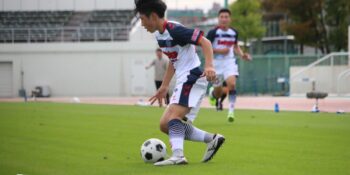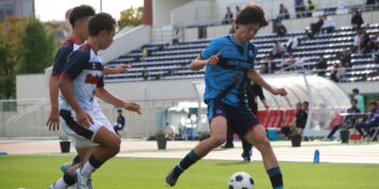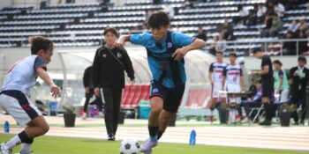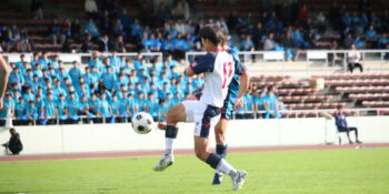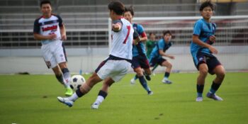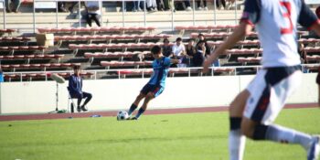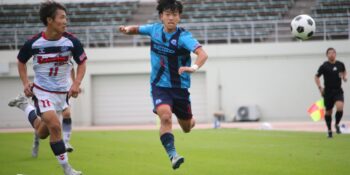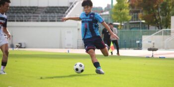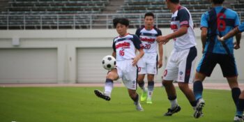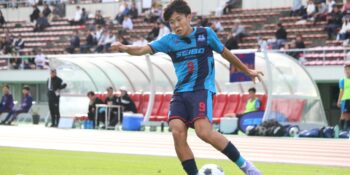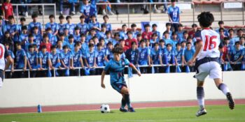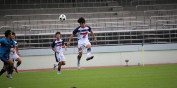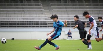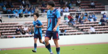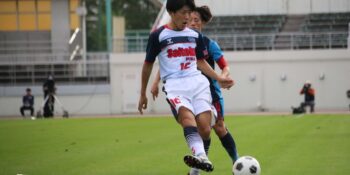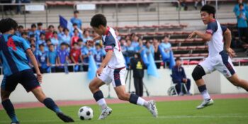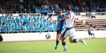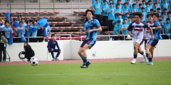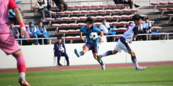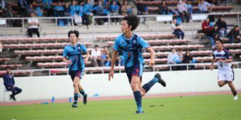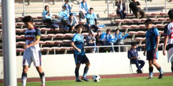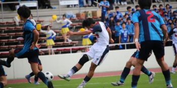 12分にはDF佐々木亮(3年)が縦パスを起点に全体が連動。MF松尾泰希(2年)がスルーし、FW川上稜介(3年)がボールを収めると、さらに右SBの菅井陽斗(3年)がそこを追い越していく動きでボールをもらい右足一閃。逆サイドネットへ蹴り込み、試合の均衡を破った。
