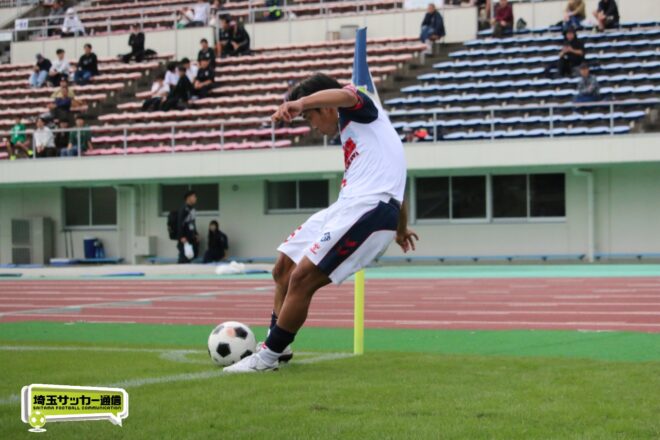 18分にはDF山谷康太朗(3年)のクロスから菅井がヘディングでゴールを脅かすも、聖望学園の1年生守護神・竹川凌平が好セーブ。しかし19分、再び攻勢に出た成徳深谷は、浮き球のこぼれ球をFW頓宮琥太郎(3年)が拾ってエリア内の鯨井へ。鯨井が左足を振り抜くと、鋭い弾道がネットに突き刺さった。2試合連続弾でリードを広げ、立ち上がりから試合を掌握した。
