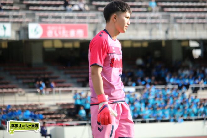成徳深谷も9分に、松尾、頓宮を下げて10番FW関根大和、MF白川成夢(ともに3年)を2枚替え。聖望学園は左右から揺さぶりをかけ、18分には成相の右クロスからMF沖田拓(3年)がヘディング。さらに混戦を前住が左足で狙ったが、成徳深谷守護神・本田一朗(3年)が防ぐ。