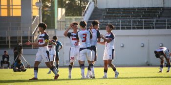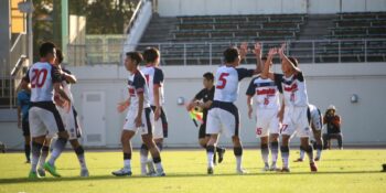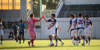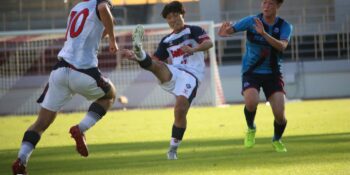 為谷洋介監督は「菅井が取った先制点は、イメージ通りで練習していた形。相手のロングスローワーにできるだけ自陣に近いところで投げさせたくなかった。なるべく押し込んでいく形で、前線にパワーのある選手を置いて、相手を下げさせたい、ひっくり返したい狙いがあった」と話す。