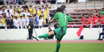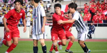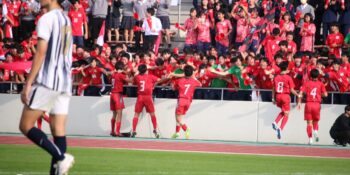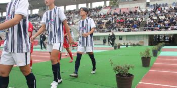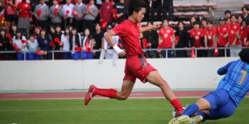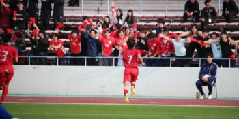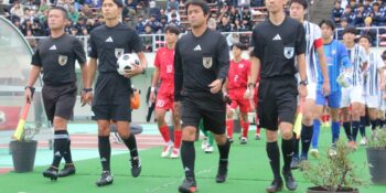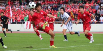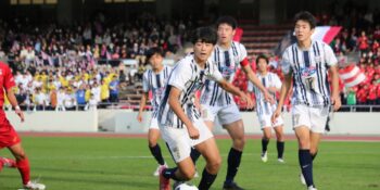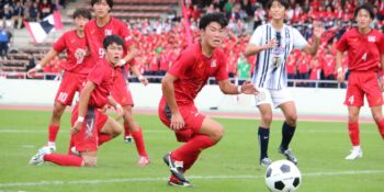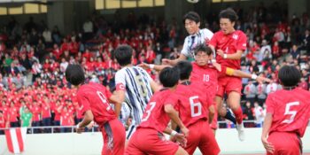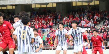 この試合の前日には昨年、国スポにも出場した10番のエースMF三上蓮恩(3年)が前十時靱帯損傷で離脱が発表されていた中でも、ブレることなく、チーム一丸となって歴史を動かした。