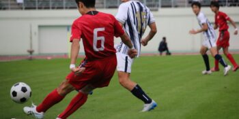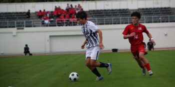 ともに3-4-2-1でスタートした試合。細田学園は186cmの長身DF高久琉我(3年)主将を筆頭としたディフェンスラインやMF佐久間征斗(3年)、MF中村圭佑(3年)のダブルボランチを中心にボールを動かし、相手のプレッシャーをうまくいなしながら攻撃を展開する。