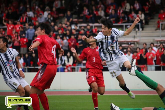 苦しんできた代が細田学園初の8強の壁を突破した。第104回全国高校サッカー選手権埼玉県予選準々決勝2日目が2日に浦和駒場スタジアムで行われ、細田学園が2-1で浦和東に逆転勝ちし、6度目の挑戦で初のベスト4に進出した。細田学園は9日の準決勝で武南と対戦する。
