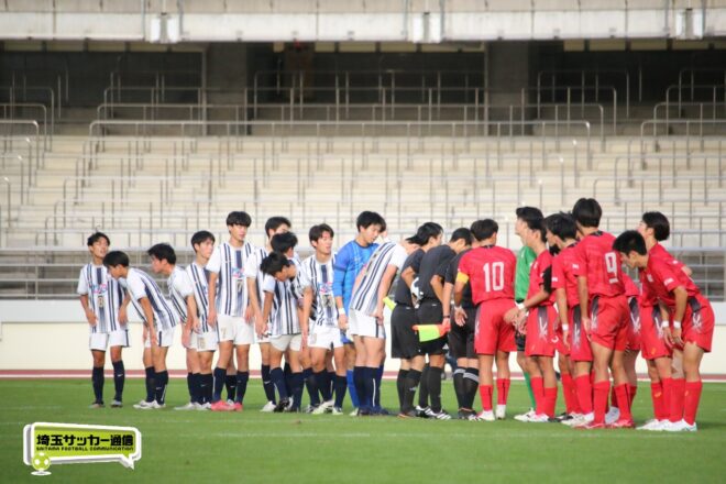 浦和東はブロックを作りながら、DF塩谷龍哉(3年)やDF足立雅空(3年)を中心とした粘り強い守備で前半を無失点で切り抜ける。一方で技術の高い相手に対し、前半の中盤以降は3トップのプレスがかからない状況もあり、後半の開始から4-2-3-1のシステムを変更する。