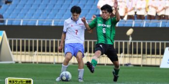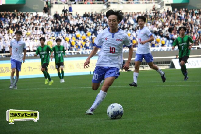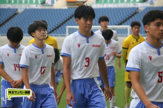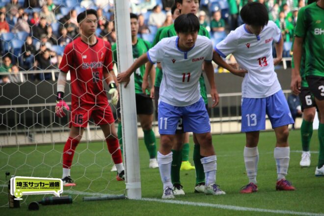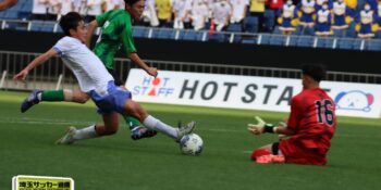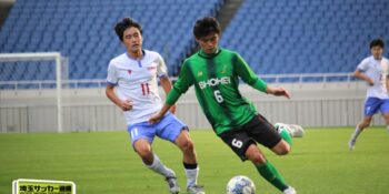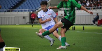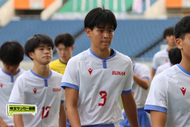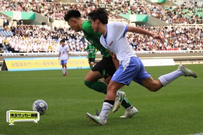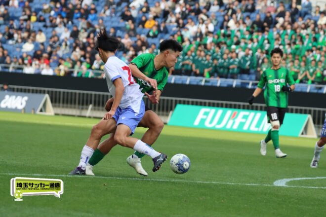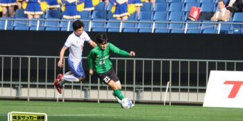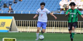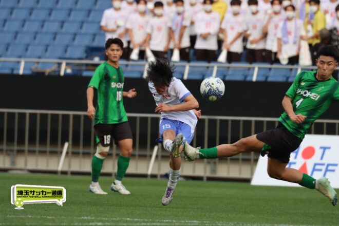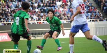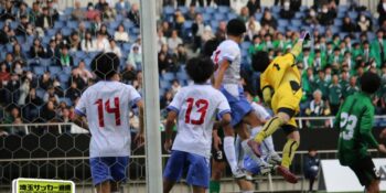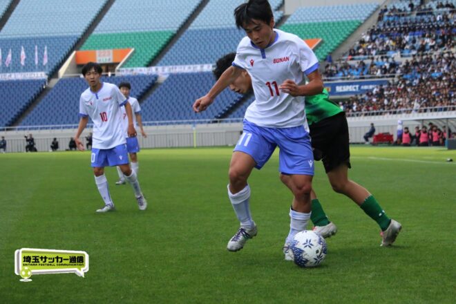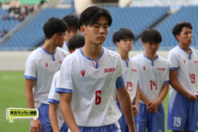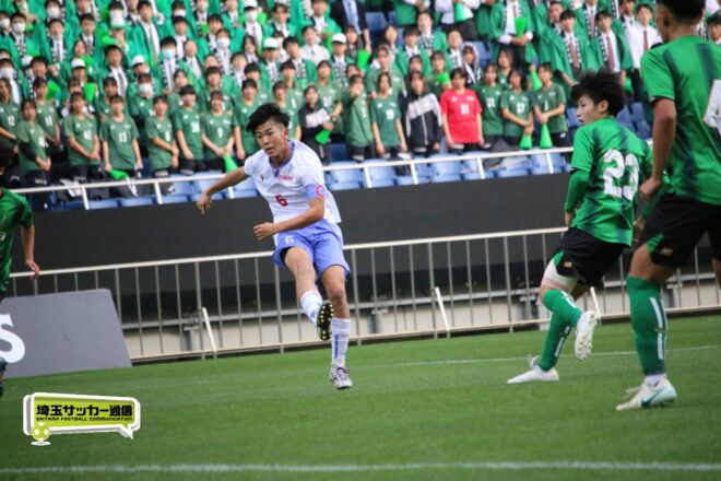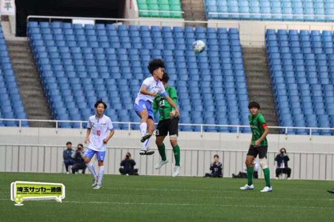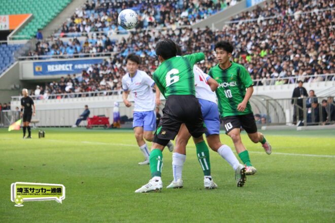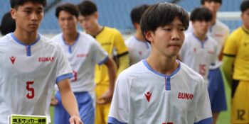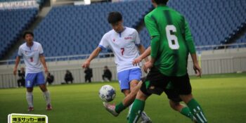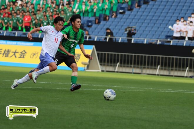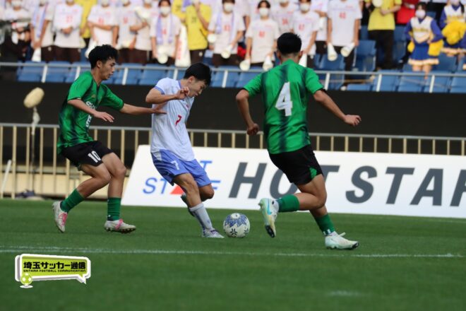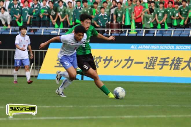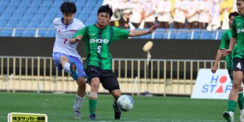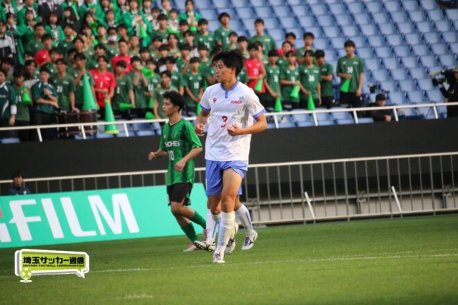 昌平は37分、ペナルティエリア内で立野が切り返してシュートを放つが、倉本とともに武南の守備を支えるDF田村大地(3年)が身体を張ってブロック。武南は40分、鞭馬の仕掛けからのシュートがDFに当たって浮き上がったボールを安藤が頭で狙ったが、バーの上だった。