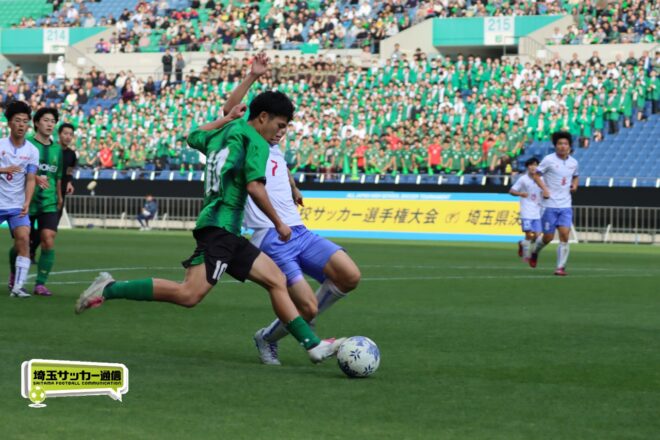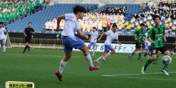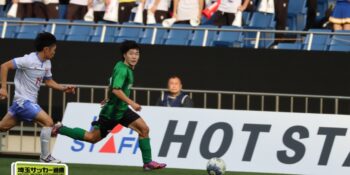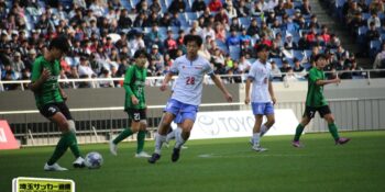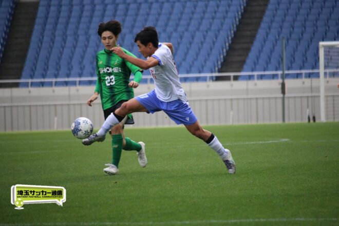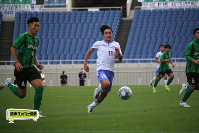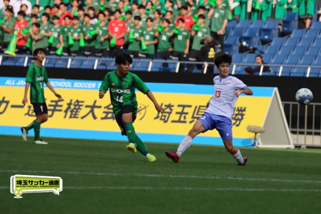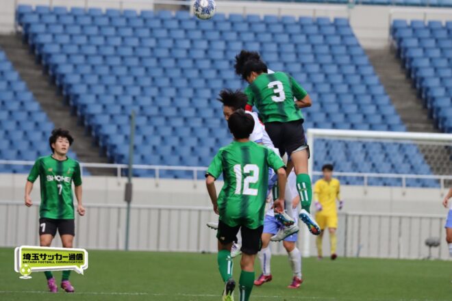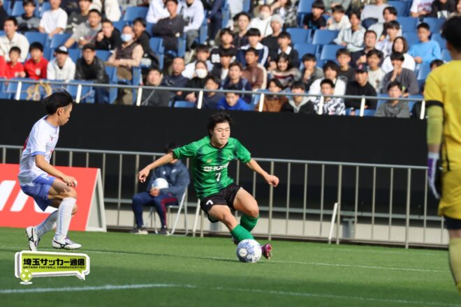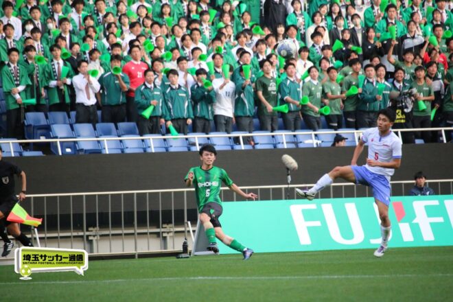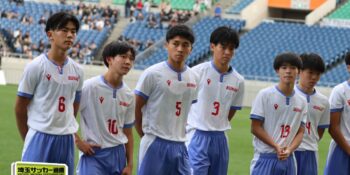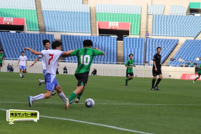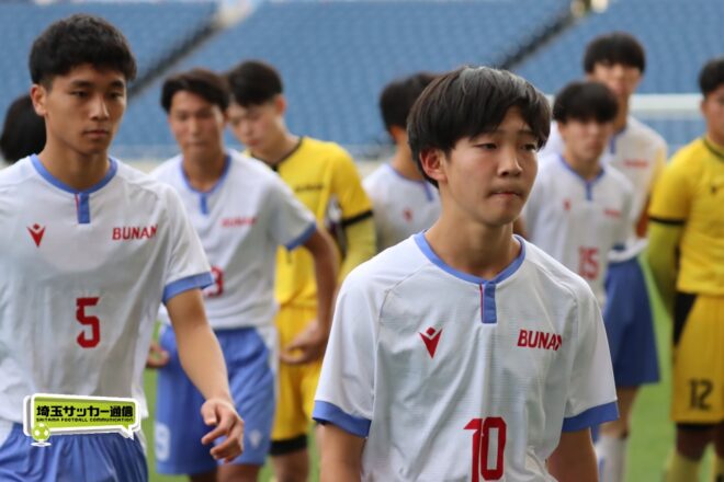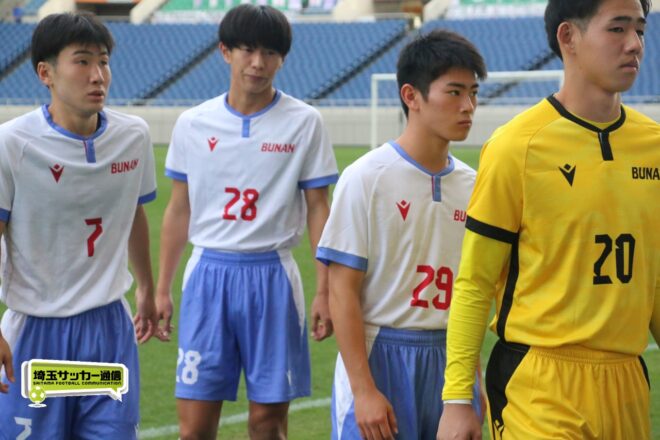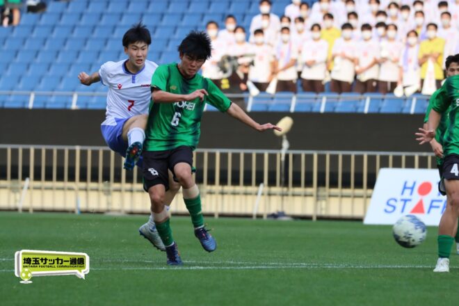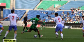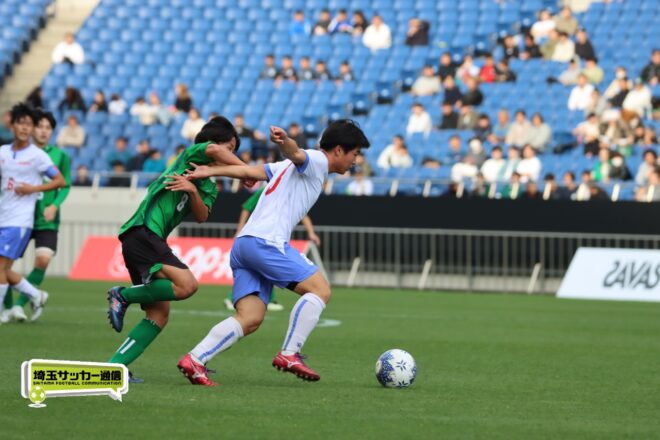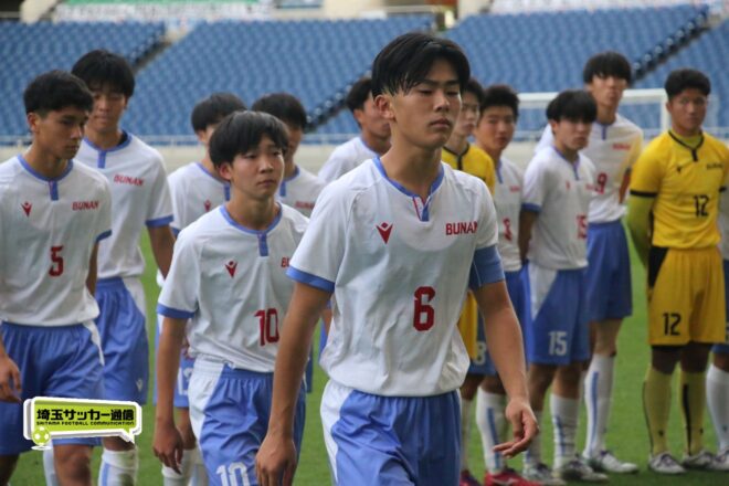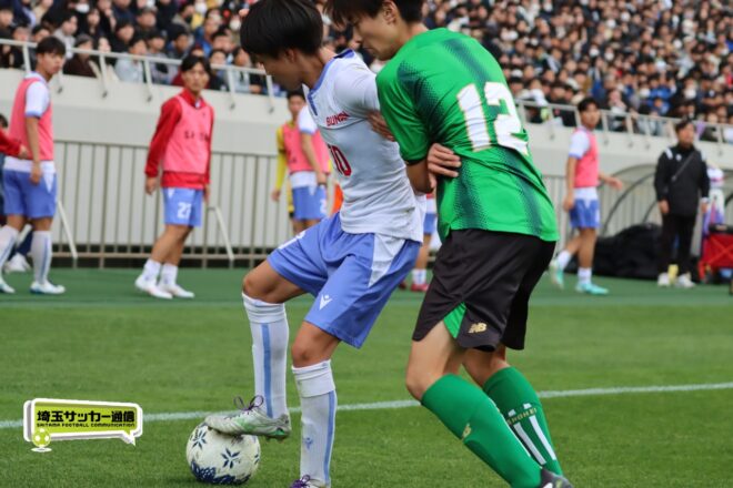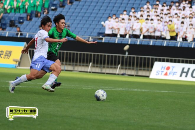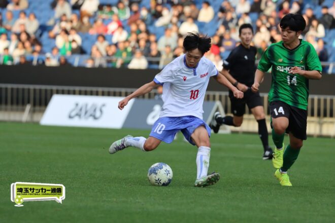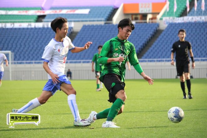 昌平は37分、ペナルティエリア内で立野が切り返してシュートを放つが、倉本とともに武南の守備を支えるDF田村大地(3年)が身体を張ってブロック。武南は40分、鞭馬の仕掛けからのシュートがDFに当たって浮き上がったボールを安藤が頭で狙ったが、バーの上だった。