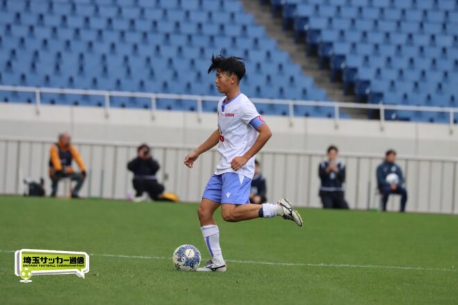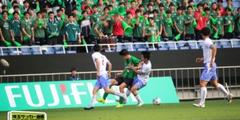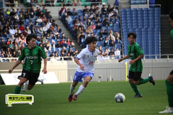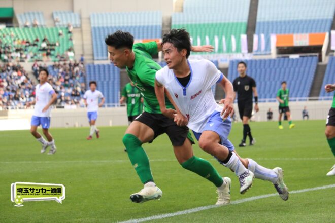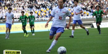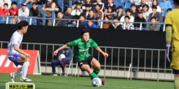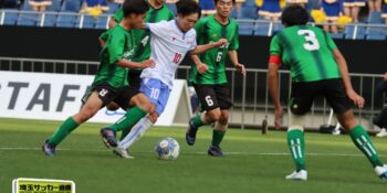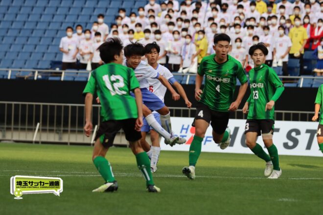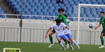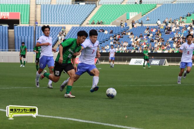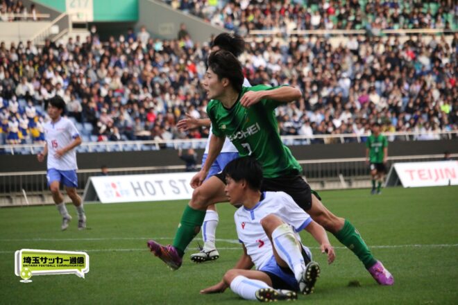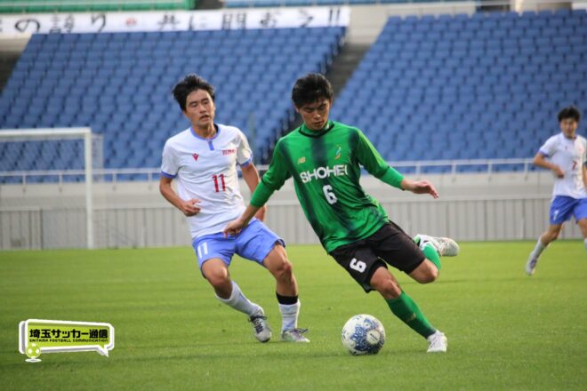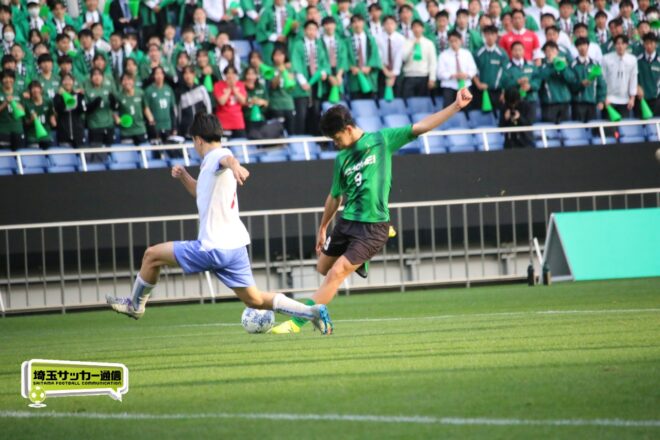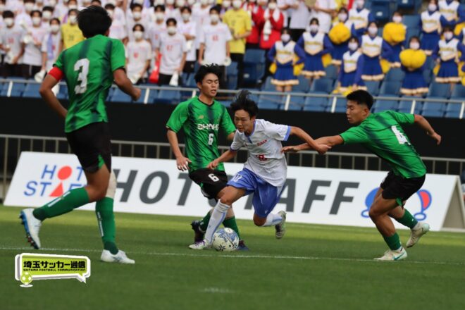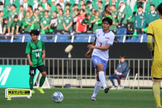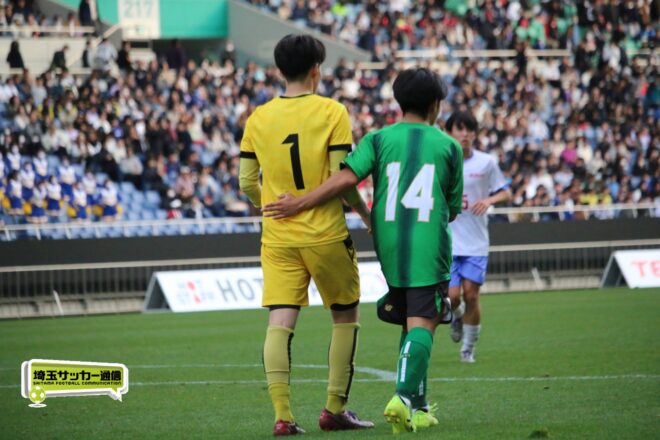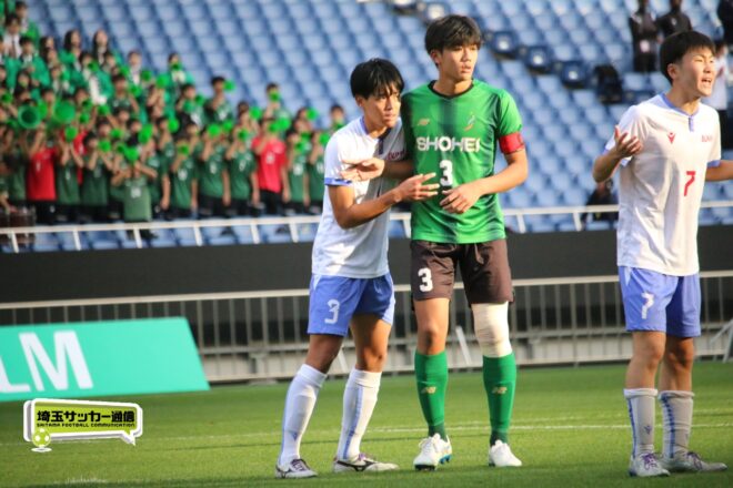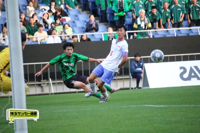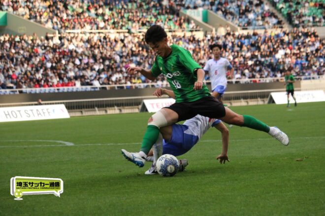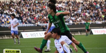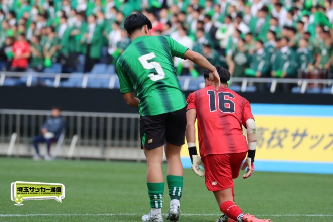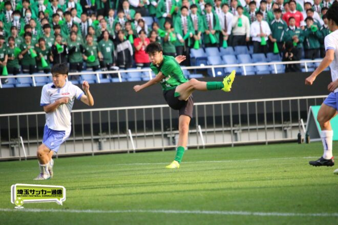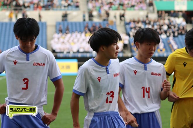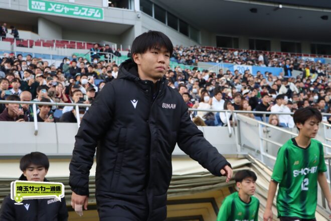 昌平は37分、ペナルティエリア内で立野が切り返してシュートを放つが、倉本とともに武南の守備を支えるDF田村大地(3年)が身体を張ってブロック。武南は40分、鞭馬の仕掛けからのシュートがDFに当たって浮き上がったボールを安藤が頭で狙ったが、バーの上だった。