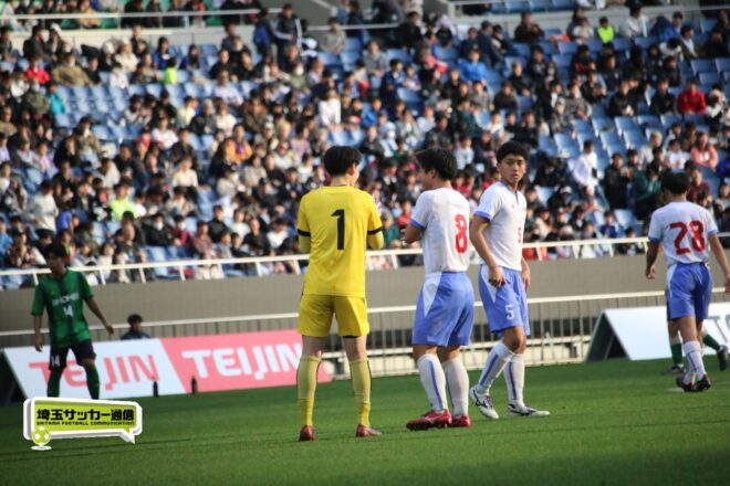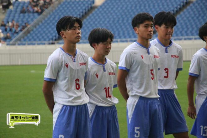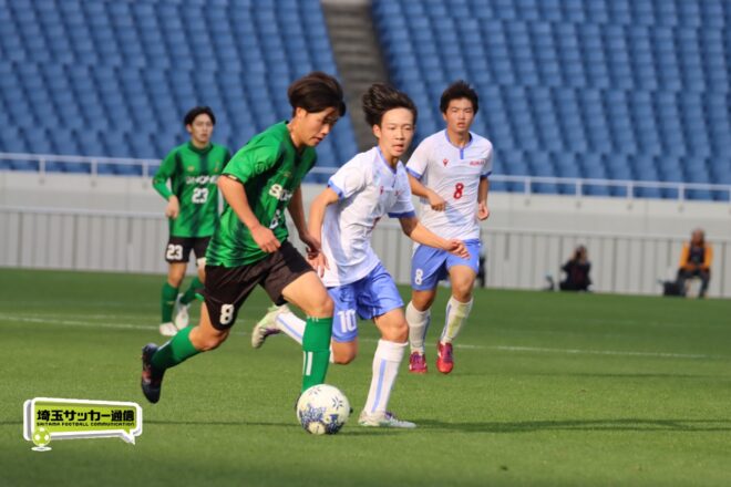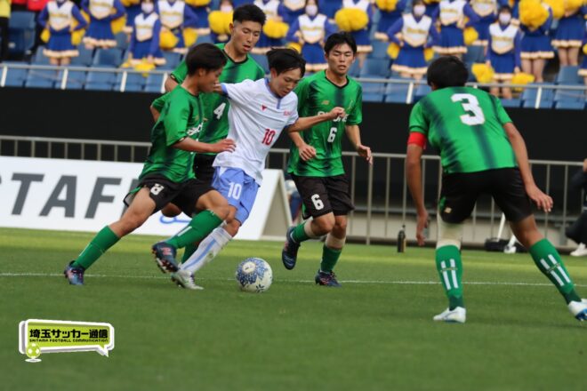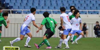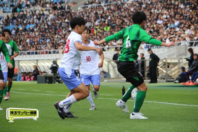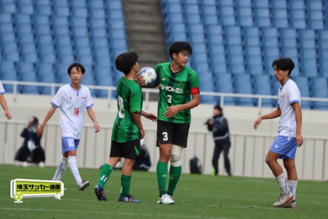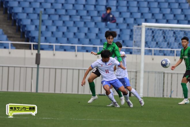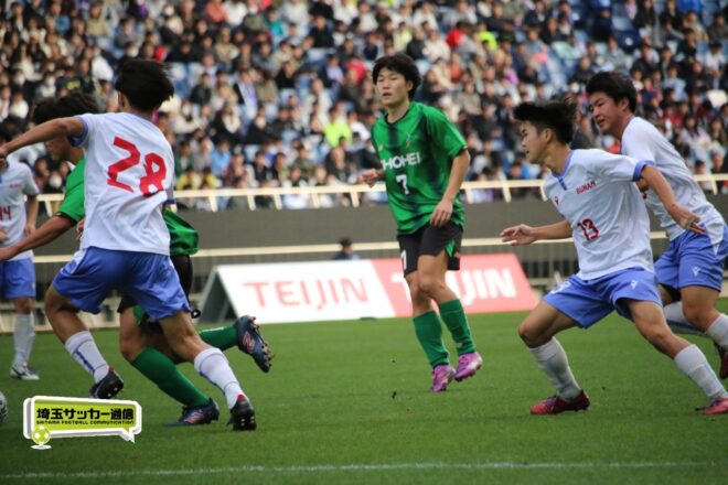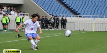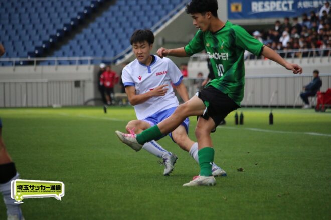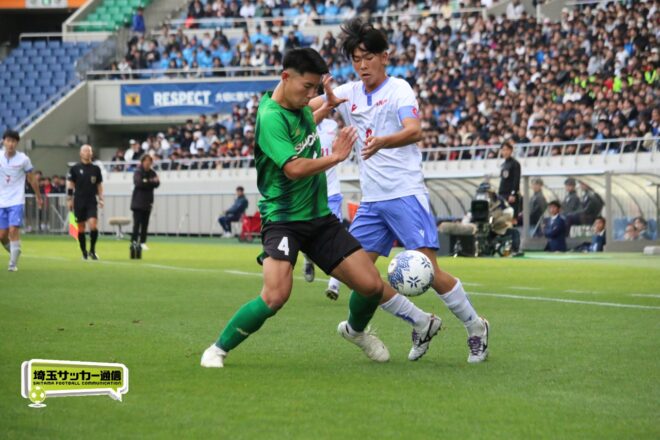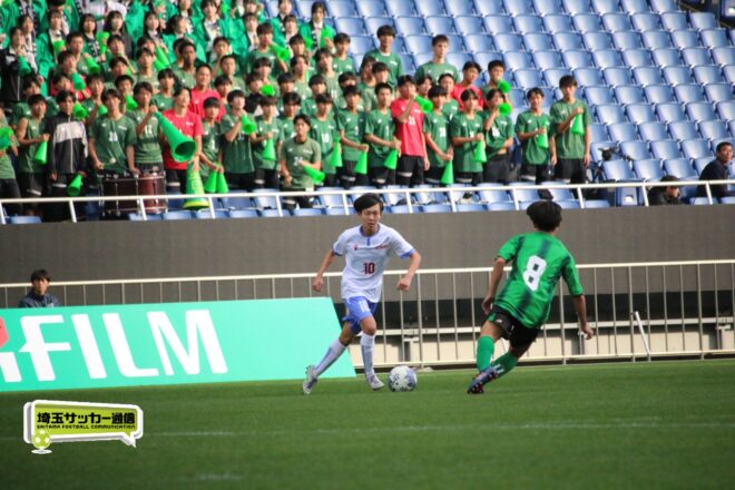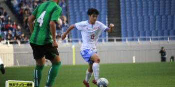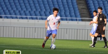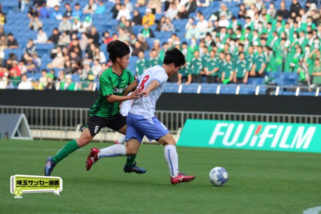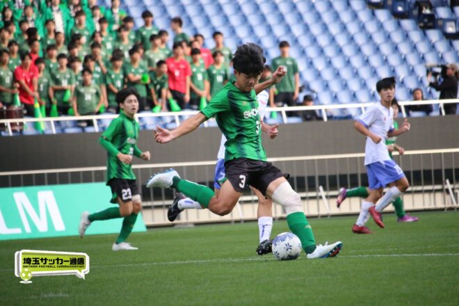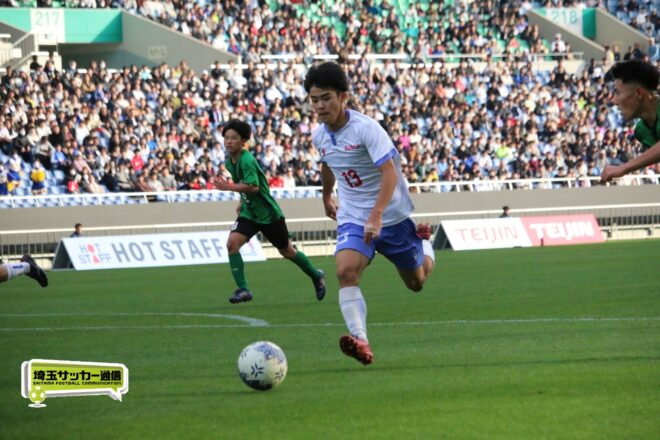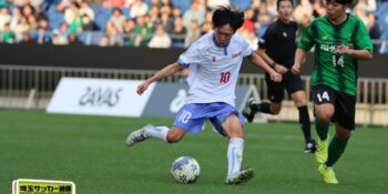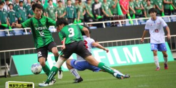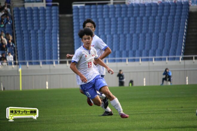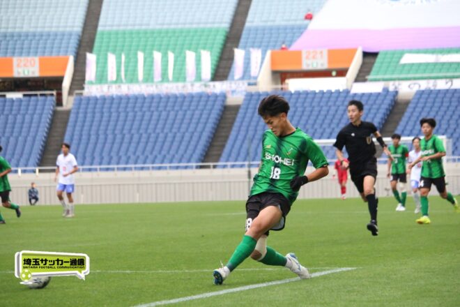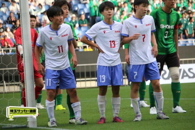 昌平は37分、ペナルティエリア内で立野が切り返してシュートを放つが、倉本とともに武南の守備を支えるDF田村大地(3年)が身体を張ってブロック。武南は40分、鞭馬の仕掛けからのシュートがDFに当たって浮き上がったボールを安藤が頭で狙ったが、バーの上だった。