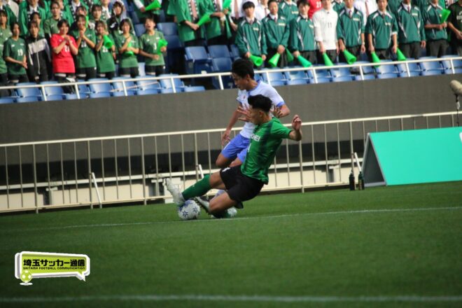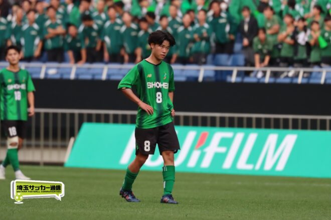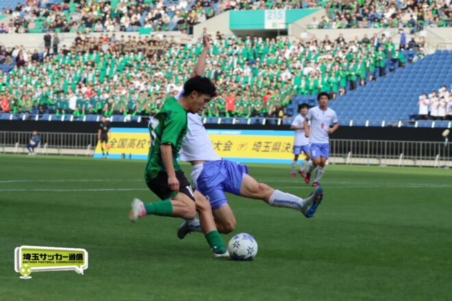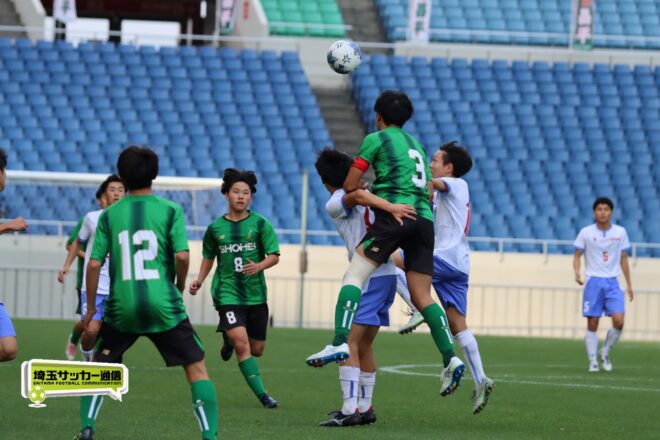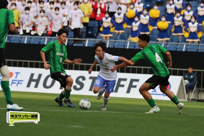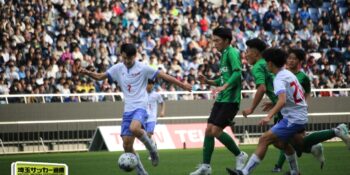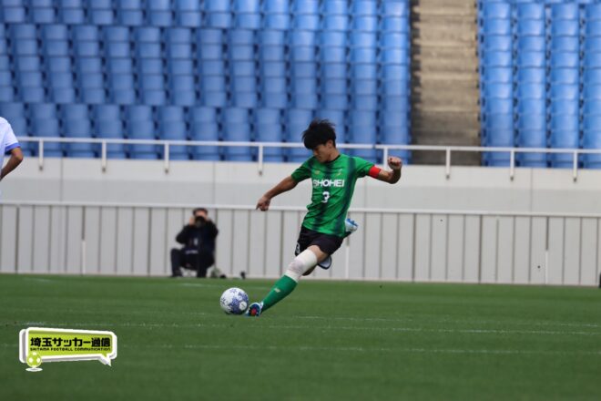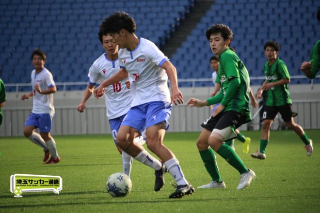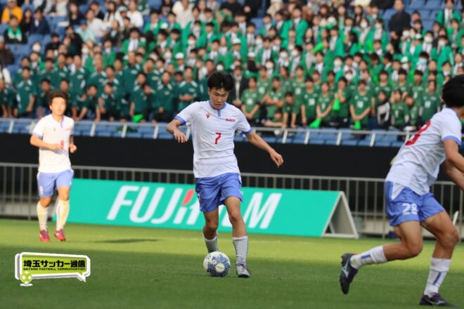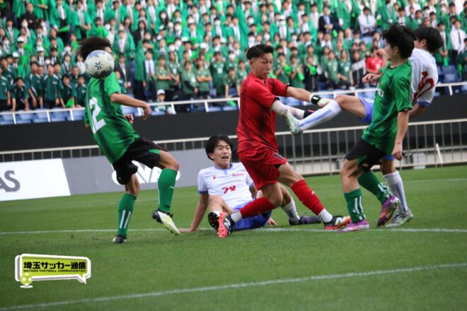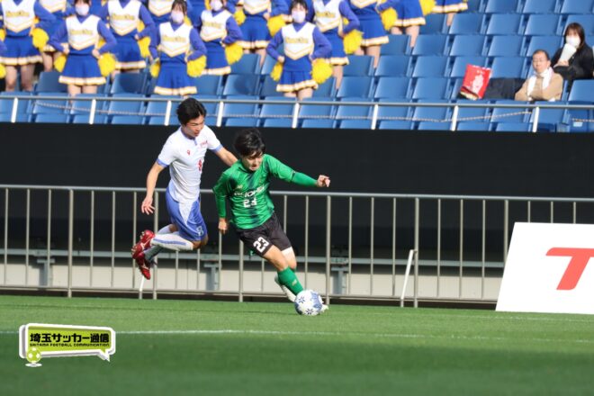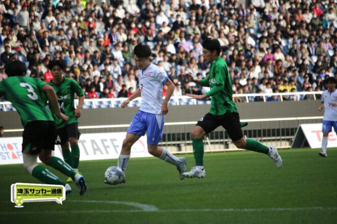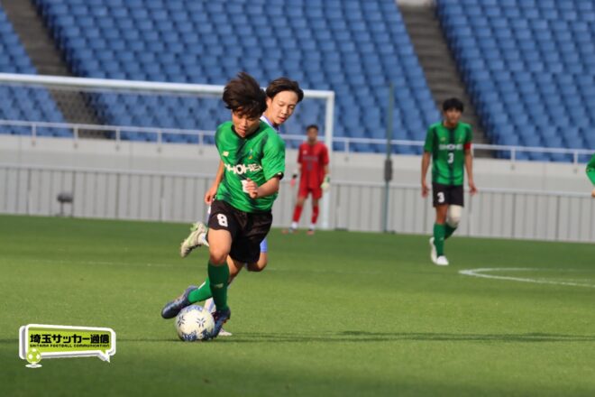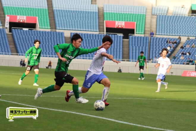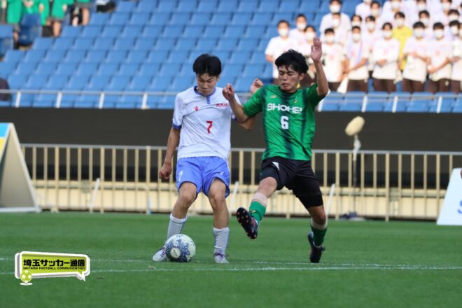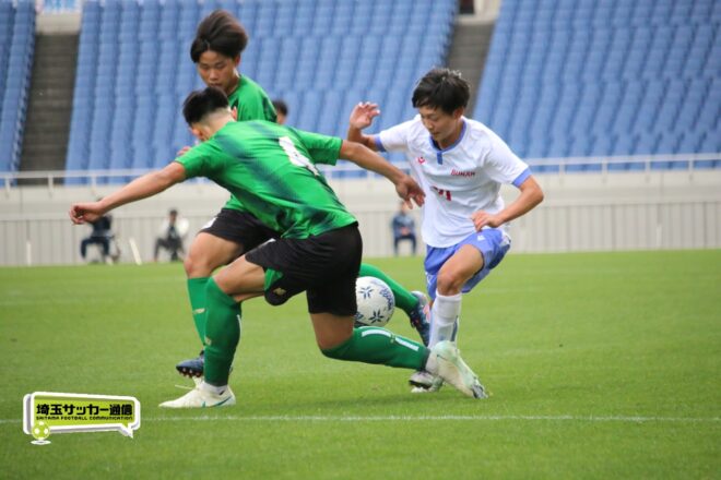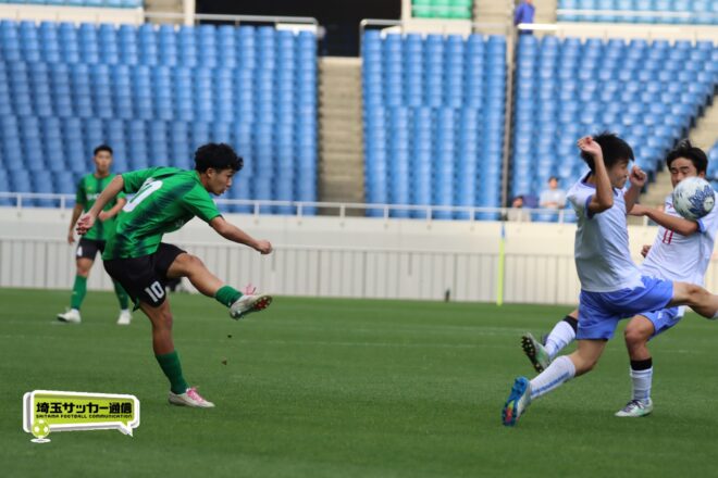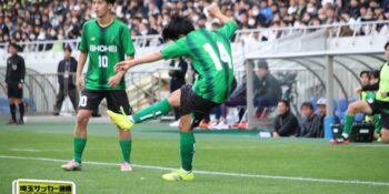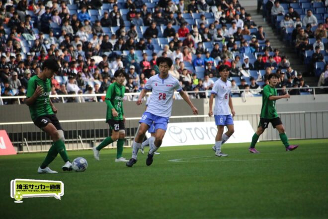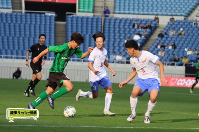 昌平は37分、ペナルティエリア内で立野が切り返してシュートを放つが、倉本とともに武南の守備を支えるDF田村大地(3年)が身体を張ってブロック。武南は40分、鞭馬の仕掛けからのシュートがDFに当たって浮き上がったボールを安藤が頭で狙ったが、バーの上だった。