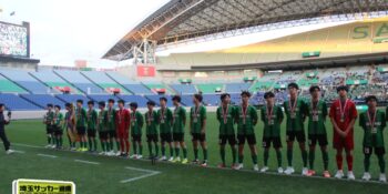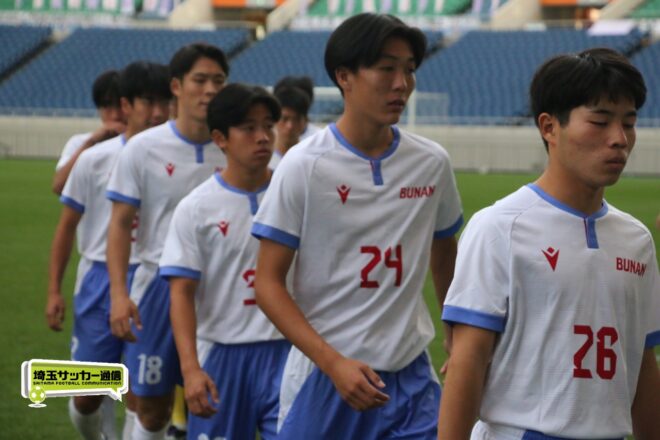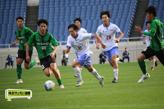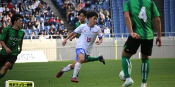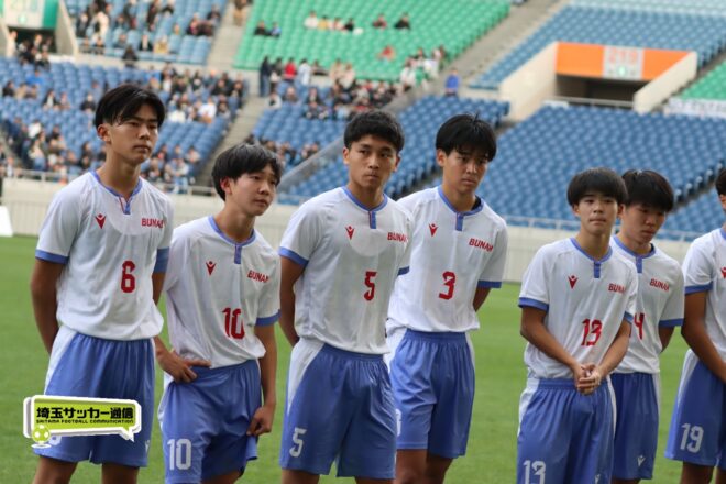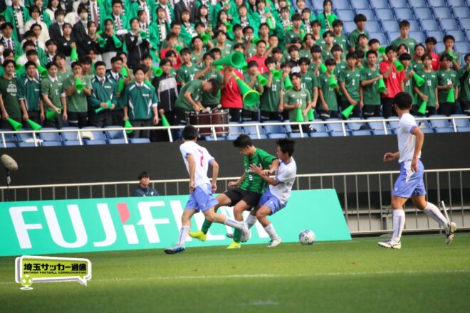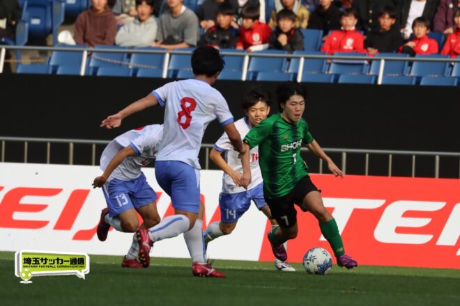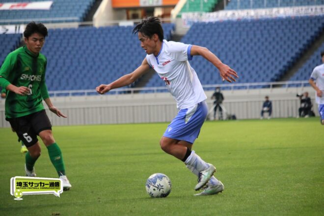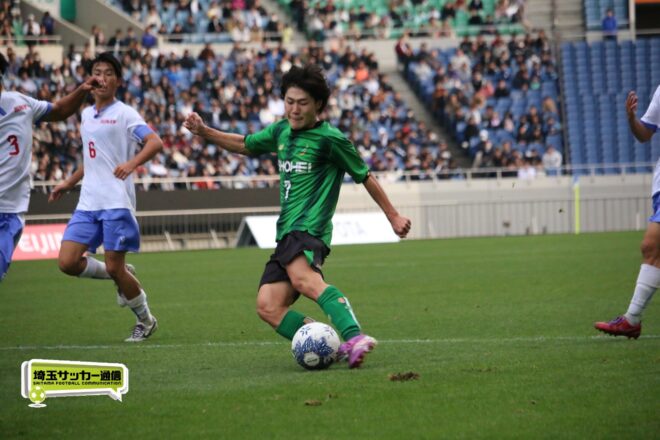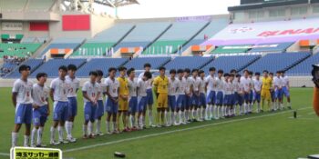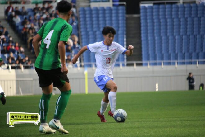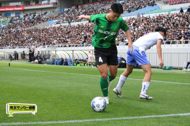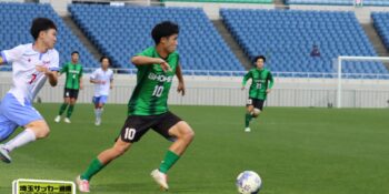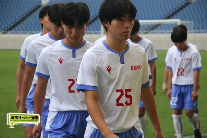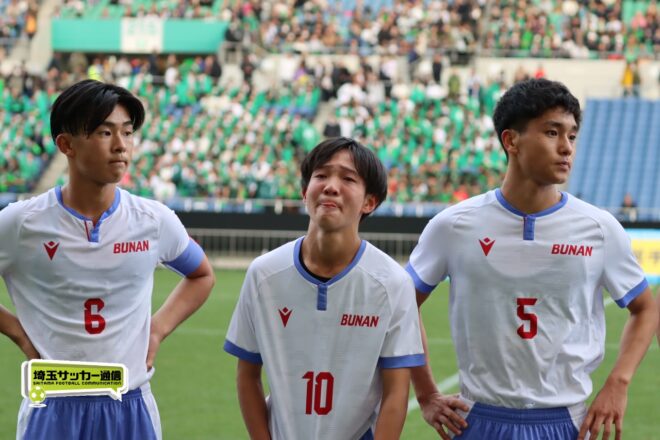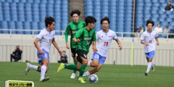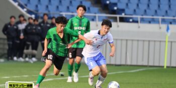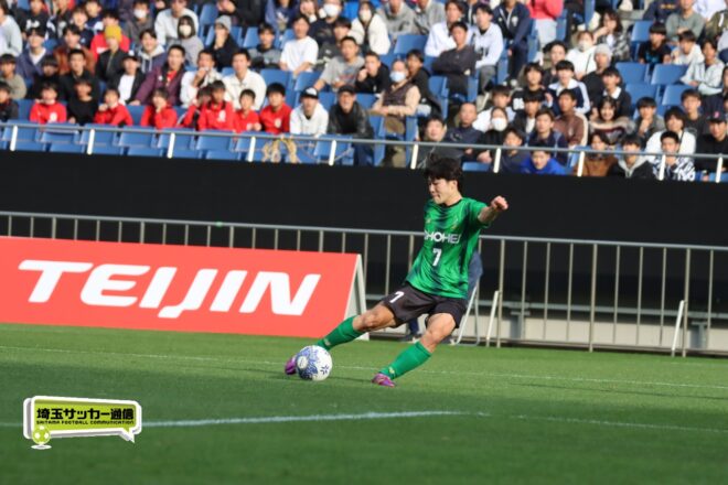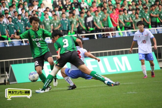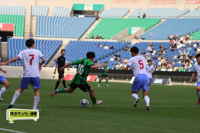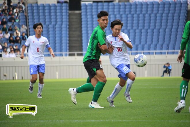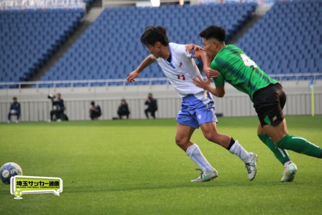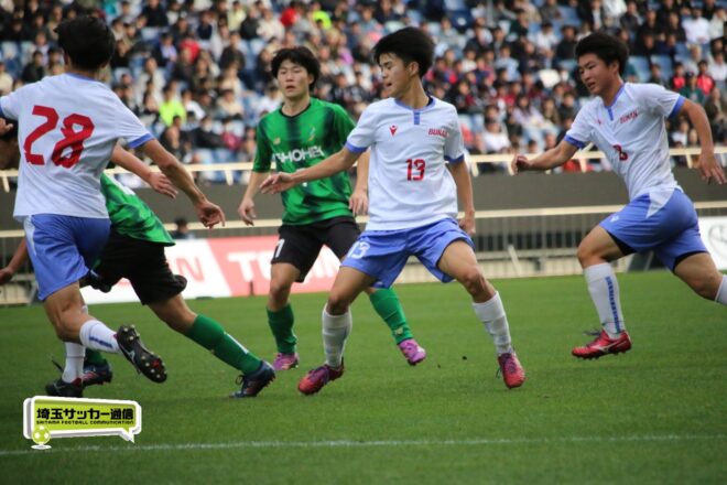 昌平は37分、ペナルティエリア内で立野が切り返してシュートを放つが、倉本とともに武南の守備を支えるDF田村大地(3年)が身体を張ってブロック。武南は40分、鞭馬の仕掛けからのシュートがDFに当たって浮き上がったボールを安藤が頭で狙ったが、バーの上だった。