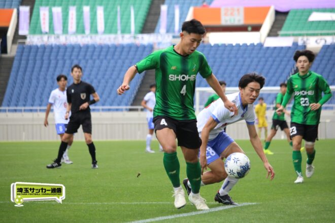 昌平は20分、飯島を起点にした攻撃で長、立野とワンタッチで繋いで齋藤が左クロス。長がゴール前に走り込んだが、ここでも倉本がスライディングで食らいつき、金がキャッチした。