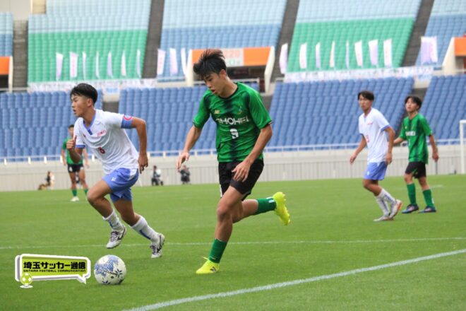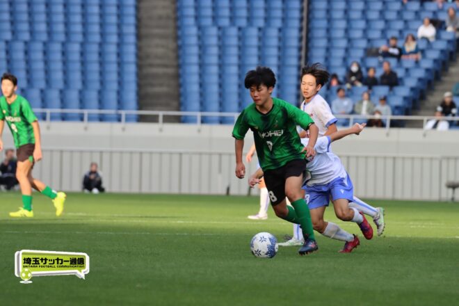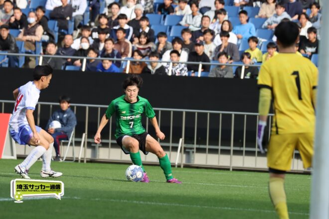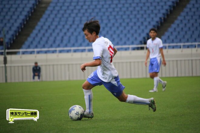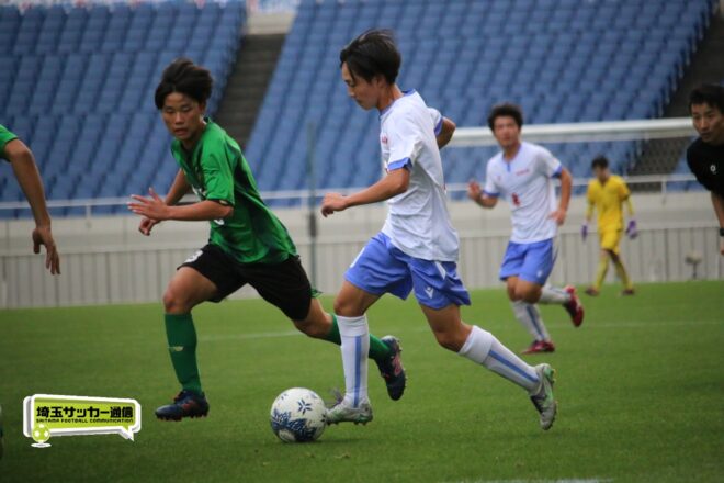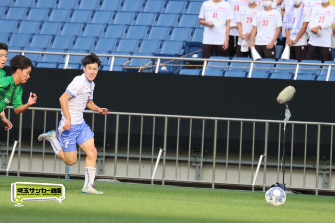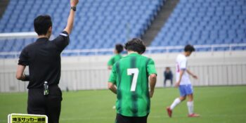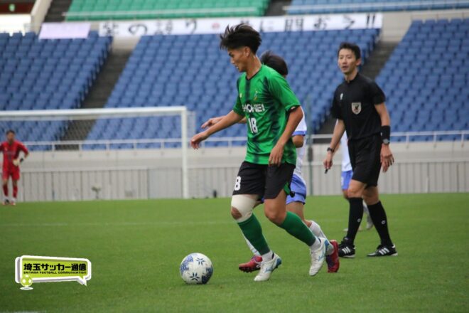 昌平は14分、FW齋藤結斗(3年)を投入。武南も16分、藤森に代えてFW安藤大翔(3年)、さらに21分にはMF鞭馬小太朗(2年)と両チームともに交代の切り札を切っていく。