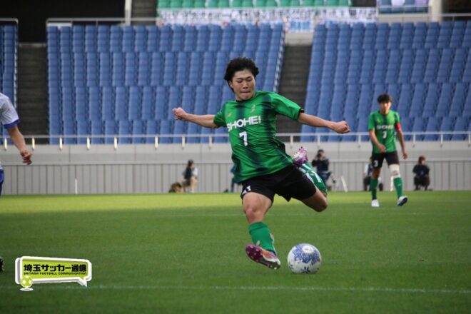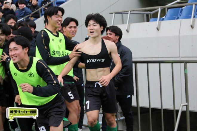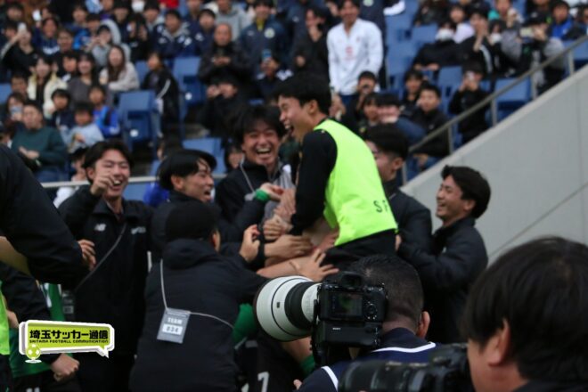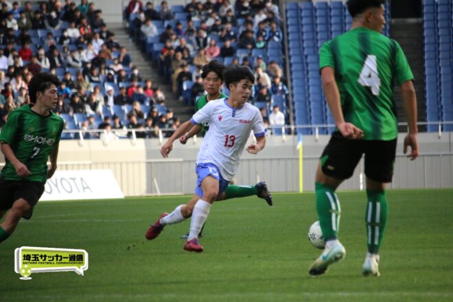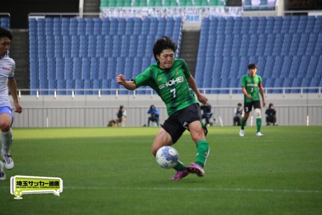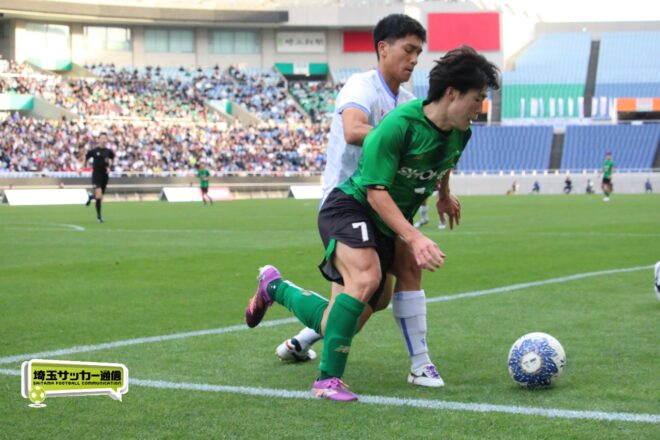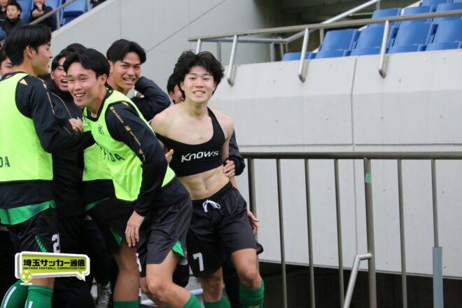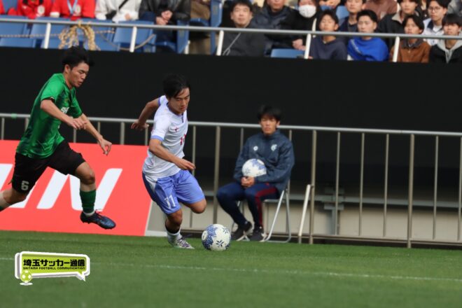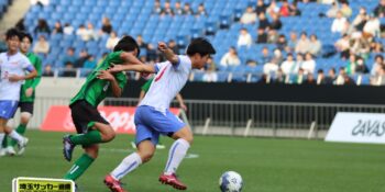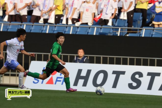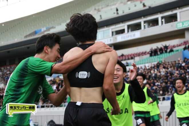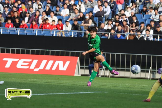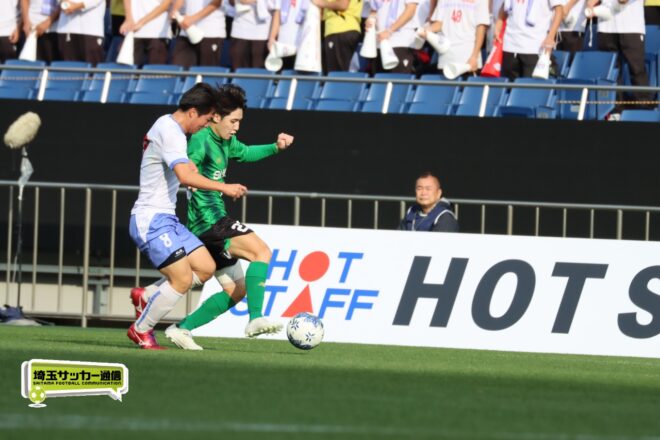 試合はそのままアディショナルタイムに突入。延長戦かと思われた矢先の40+2分、ついにゲームが動く。昌平は古川が縦に入れたボールに対し、長がファーストタッチで相手SBを外してドリブルでゴール前に侵入すると、左足のコントロールシュートで突き刺して均衡を破る。