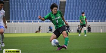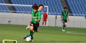 序盤から激しいボールの奪い合いとなった中で武南は、前線から積極的にプレスをかけ囲い込みからボールを奪取。10番MF有川達琉(3年)がエリア内に潜り込んでチャンスを作った。