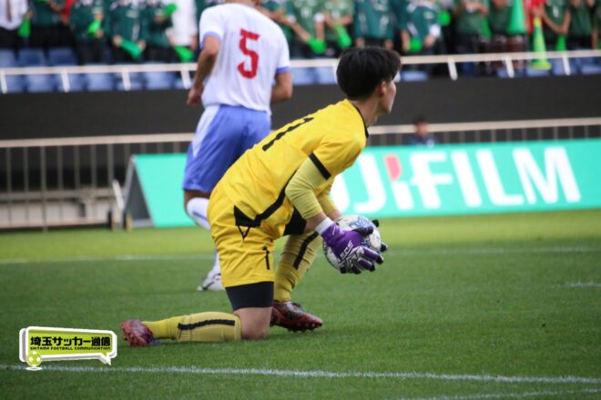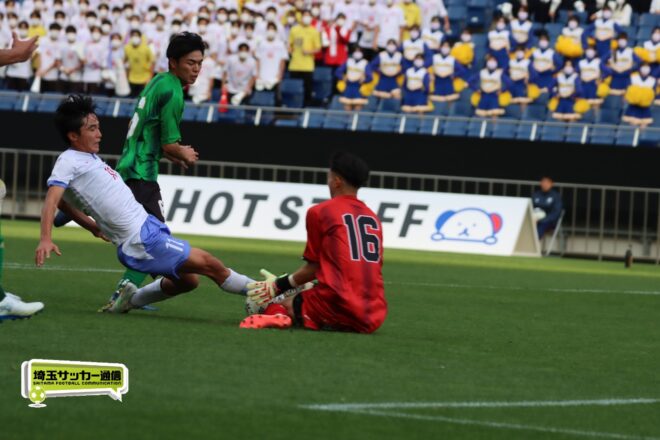 武南は37分、敵陣でボールを回収した関口が有川とのパス交換からエリア内に侵入。関口のクロスから有川と繋ぎ、FW藤森隼叶(3年)が収めて左足で狙ったが、果敢に前に出た昌平の守護神、小野寺太郎(3年)が好ストップ。さらにこぼれ球を有川が詰めたが、決めきれない。武南は39分にも速い寄せでボールを奪い、MF小山一絆(2年)がエリア内に侵入して決定的な場面を作ったが、ここも小野寺がファインセーブを見せてゴールは割らせなかった。