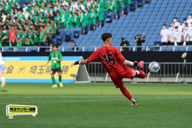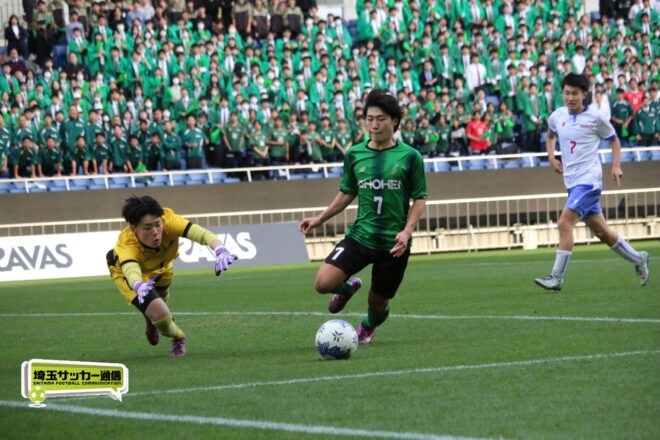 それに対し昌平は個が力を発揮し、12分にはMF飯島碧大(2年)のスルーパスからU-18日本代表MF長璃喜(3年)が抜け出し、ディフェンダーを交わしてシュートを放つが、ここは怪我で準決勝はメンバーから外れた守護神の金昶銖(2年)が好反応を見せてストップする。