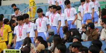 武南は189cmの長身FW千葉龍ノ介(3年)を投入。終盤にはロングスローから千葉が高さを見せるが、小野寺を中心にしっかりと1点を守り切った昌平が1-0で接戦を締めくくった。
