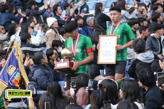 主将を務めるDF伊藤隆寛(3年)は「本当にいまはすごくホッとしていて、嬉しい気持ちがあります」と安堵の笑顔。今年の高3は系列のFC LAVIDAで夏冬と全国を逃し、悔しい想いをしてきた代。さらに昨年は先輩たちが夏に日本一となりながらも、冬に選手権出場を逃した姿も観てきた中で「本当に苦しいというか、そういう状況が続いて、いろいろ周りの声とかも聞こえますし、プレッシャーもある中で優勝できたっていうのは本当に嬉しいです」と話す。