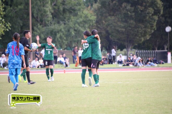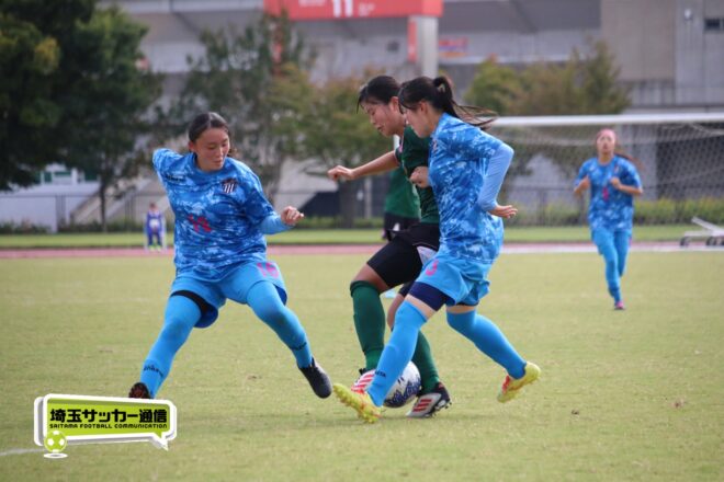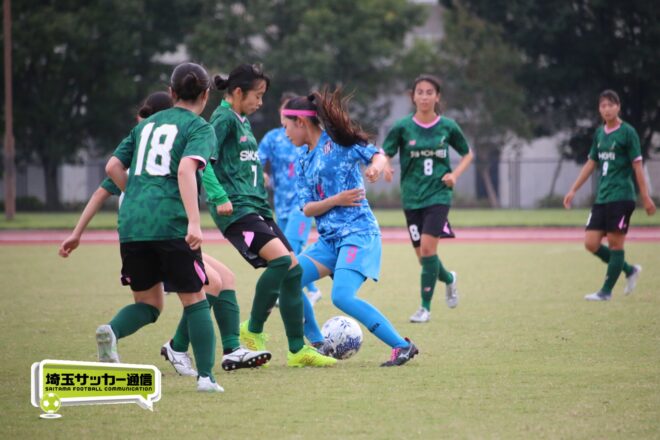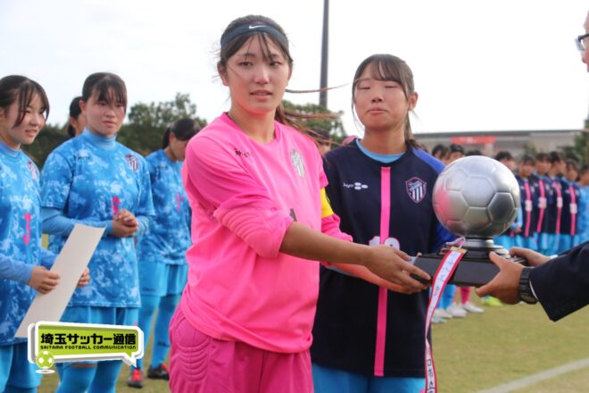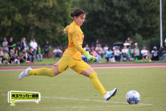 花咲徳栄も夏の遠征で鍛えてきた競り合いの部分や球際の部分で1人1人が強さを見せて相手に自陣で自由に前を向かせず。MF米彩寧、10番MF柾谷雫(ともに2年)がセカンドボールを回収し、相手にペースを握らせない。最終ラインも土肥七々莉、小池杏怜(ともに3年)のCBコンビを中心に粘り強い守備。そして最後のところでは須川が再三にわたって好守を見せた。