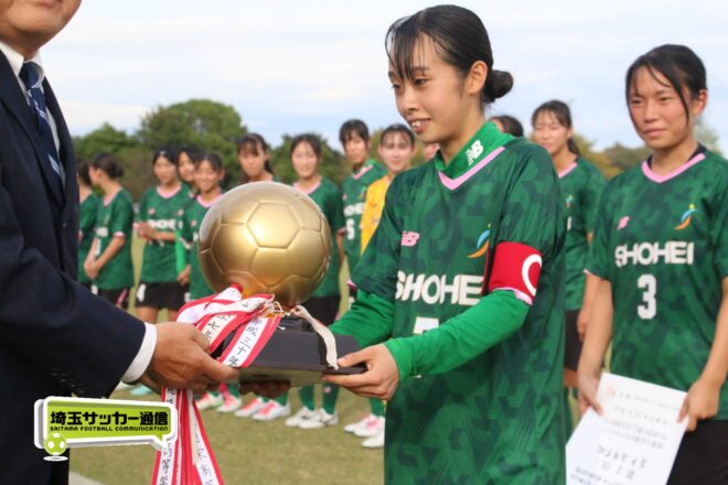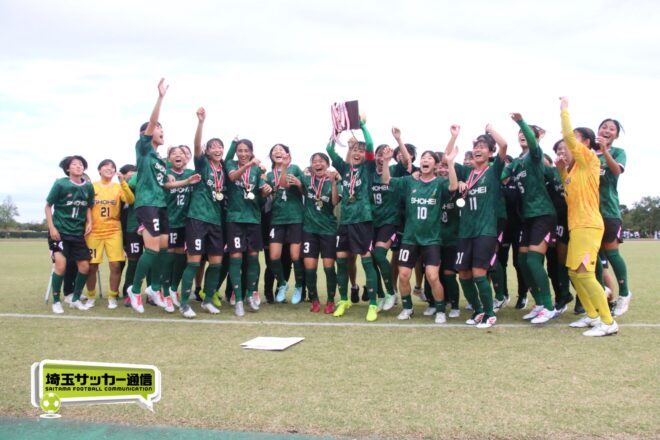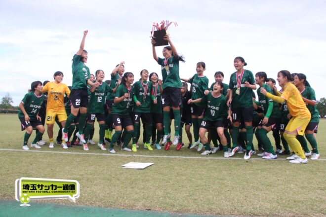 苦しみながらも昌平が2年連続の全国へ。令和7年度埼玉県高校女子サッカー選手権大会決勝が10月13日に熊谷スポーツ文化公園補助陸上競技場で行われ、昌平と花咲徳栄が対戦。延長戦までもつれた一戦は昌平が2-1で制し、新人戦、総体予選に続く、県内3冠を成し遂げた。