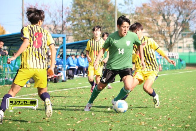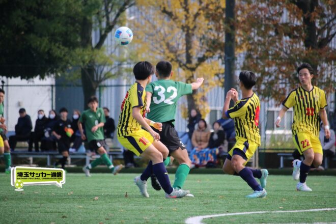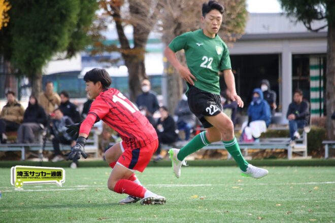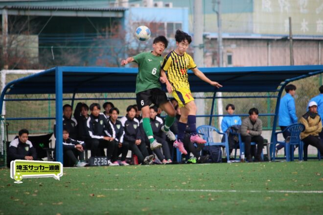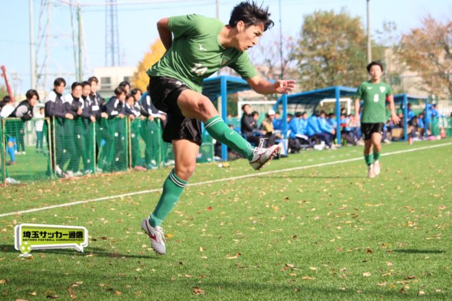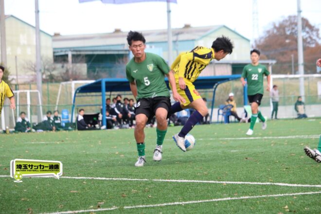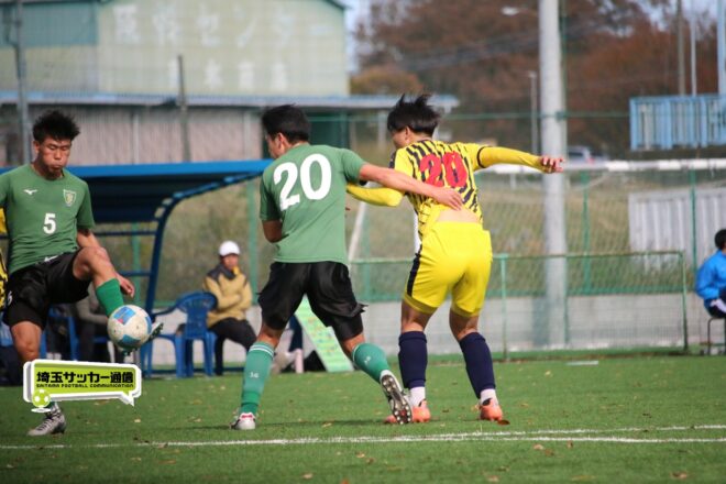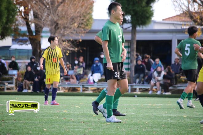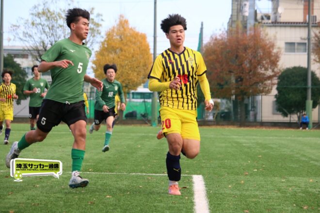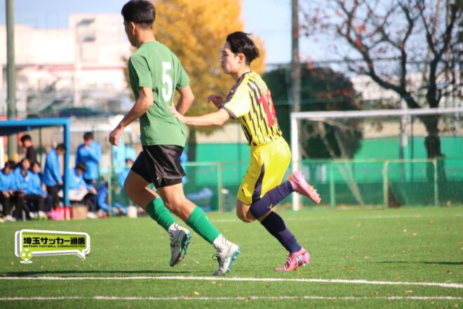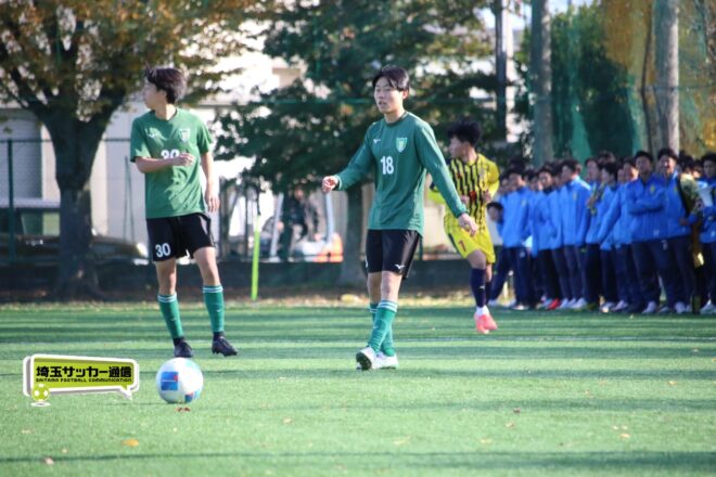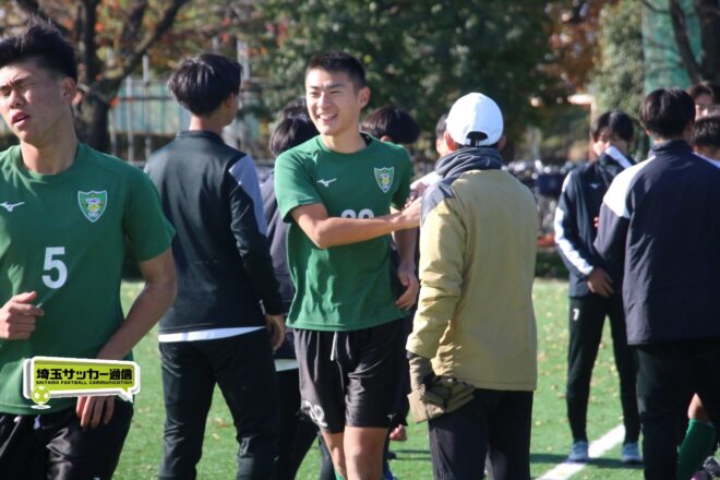 武蔵越生は長身FW森一馬(3年)をポイントにしながら攻撃を展開したかったが、前半はうまく形を作ることができず、シュートは森の1本のみだった。その中でも後半5分、前線でパスカットしたFW野口遥(3年)が決定機を迎えたが、シュートはブロックに遭う。西武台Ⅱは10分、浅井が左から切り込んでシュートを狙うが、三度小林が至近距離からのシュートを防いだ。