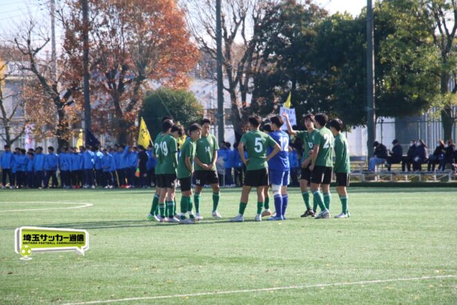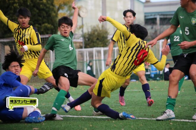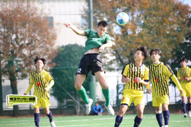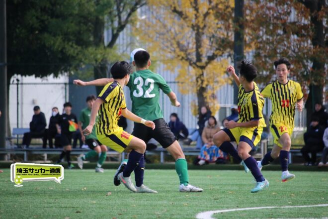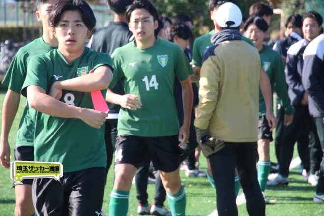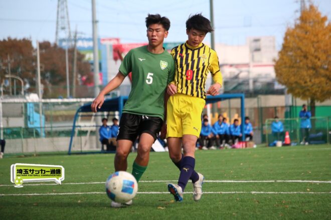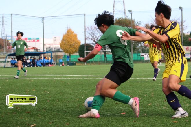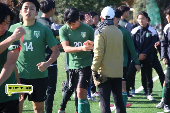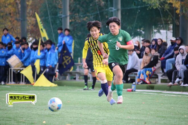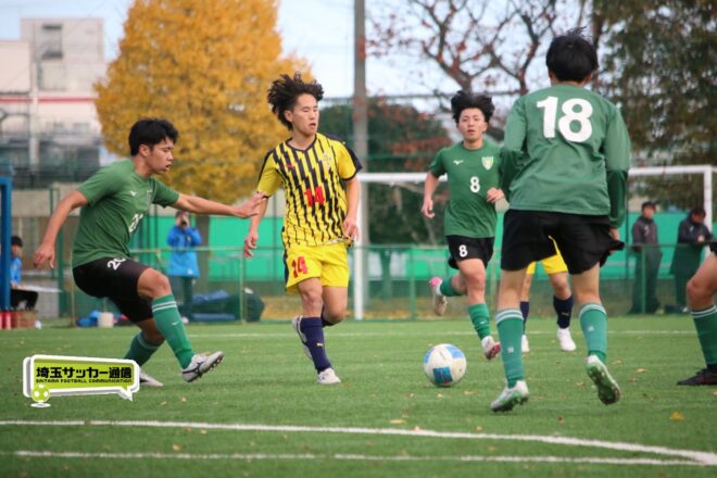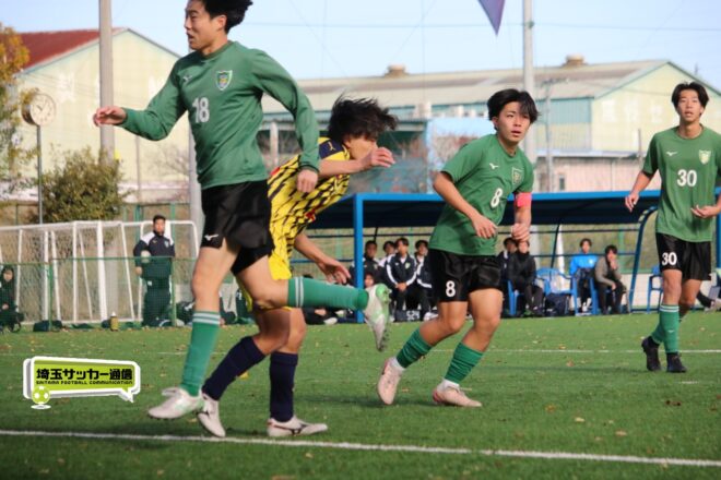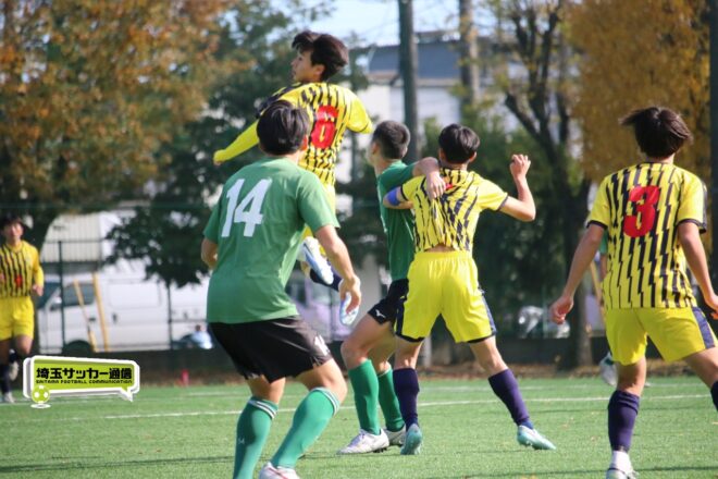 武蔵越生は長身FW森一馬(3年)をポイントにしながら攻撃を展開したかったが、前半はうまく形を作ることができず、シュートは森の1本のみだった。その中でも後半5分、前線でパスカットしたFW野口遥(3年)が決定機を迎えたが、シュートはブロックに遭う。西武台Ⅱは10分、浅井が左から切り込んでシュートを狙うが、三度小林が至近距離からのシュートを防いだ。