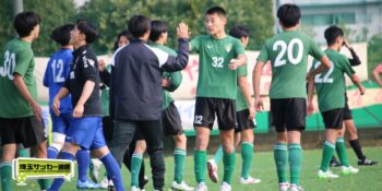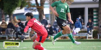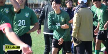 西武台は28分、右クロスにFW木村太俊(3年)が走り込んで合わせたが、武蔵越生は左SBの廣澤歩(3年)が身体に当てて小林がキャッチ。また、中嶋が献身性を見せて逆サイドの裏のスペースに守備に走るなど、チームとして全員が身体を張って守る。終盤も西武台Ⅱにゴールに迫られたが、ゴールを隠しながら無失点で抑えきり、1-0で勝利して自力での残留を決めた。