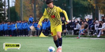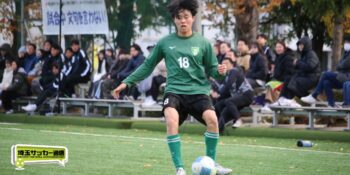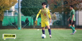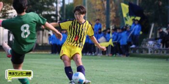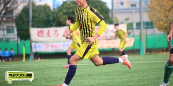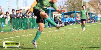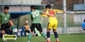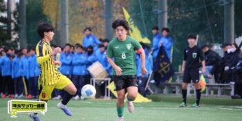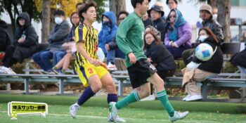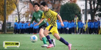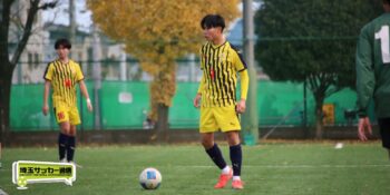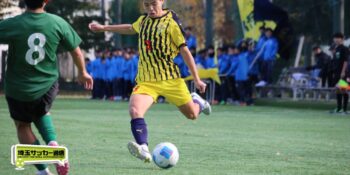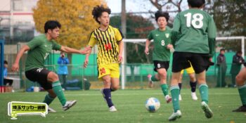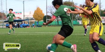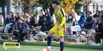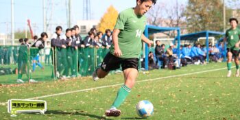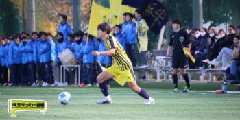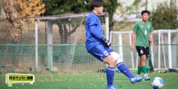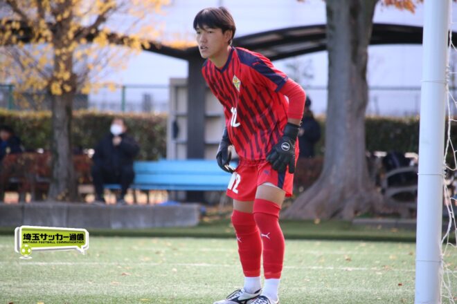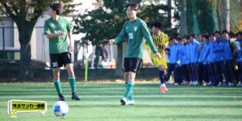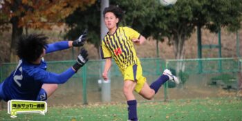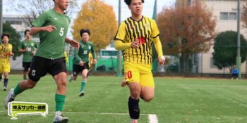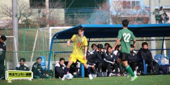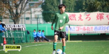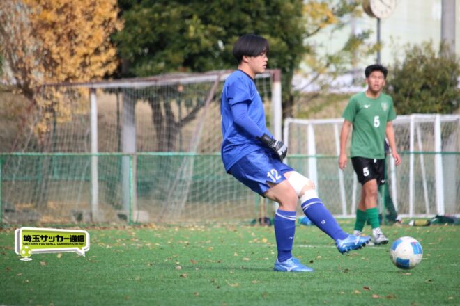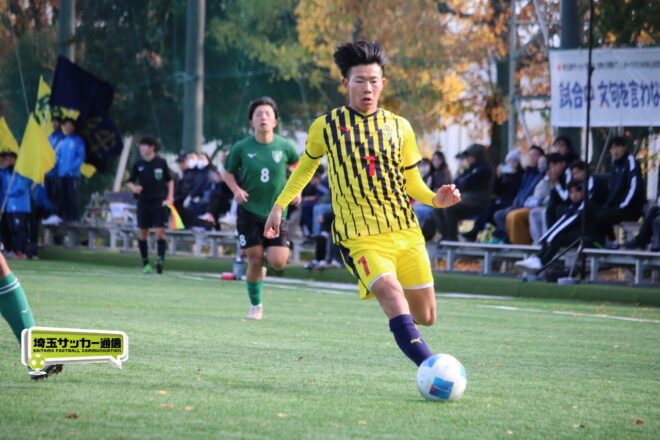 15分には中川が左サイドに展開。浅井のクロスをFW星野喬介(3年)が中で収めて決定的な場面を作ったが、ここは武蔵越生の守護神・小林汰雅(3年)が身体を張って防ぐ。32分にも西武台Ⅱは星野が競り、中川が抜け出してチャンスを迎えたが、ここも小林が横っ飛びで防いだ。