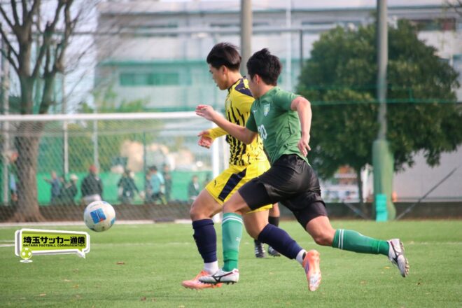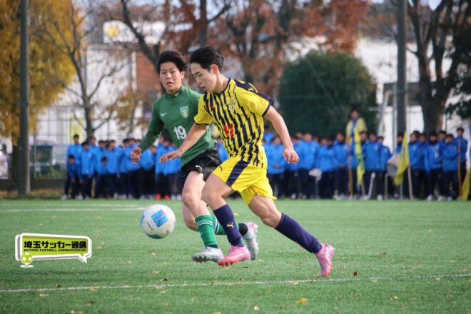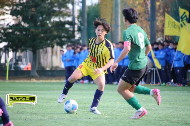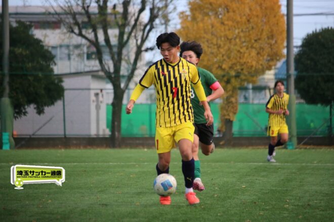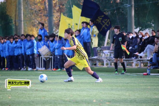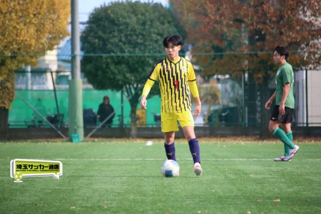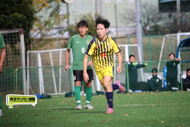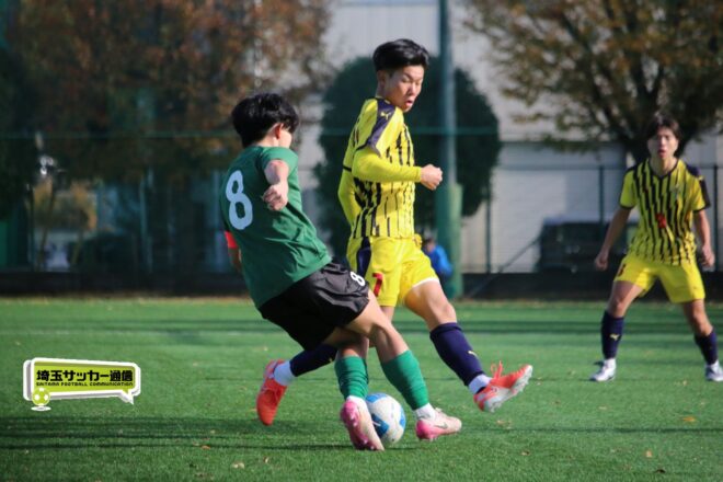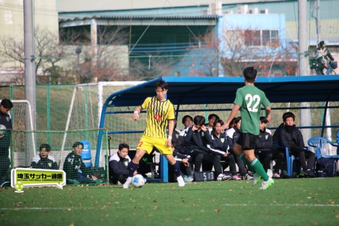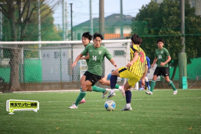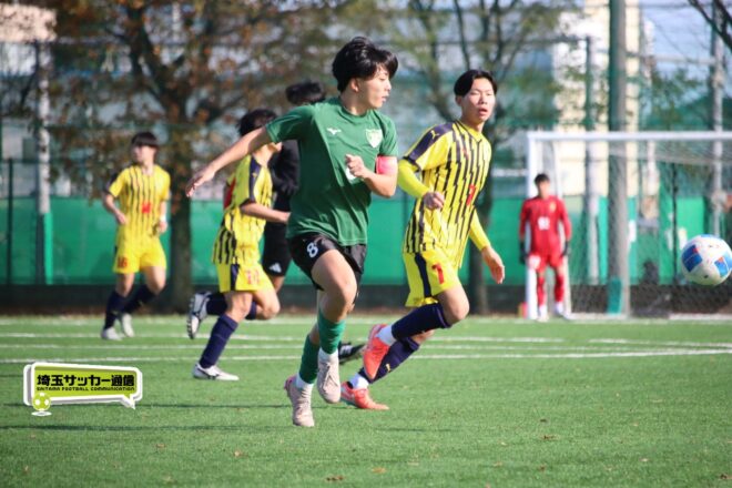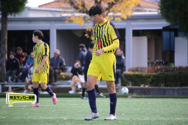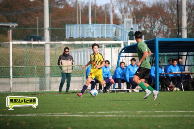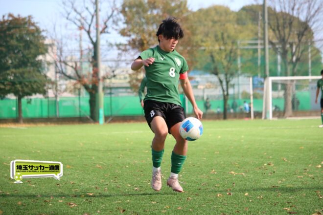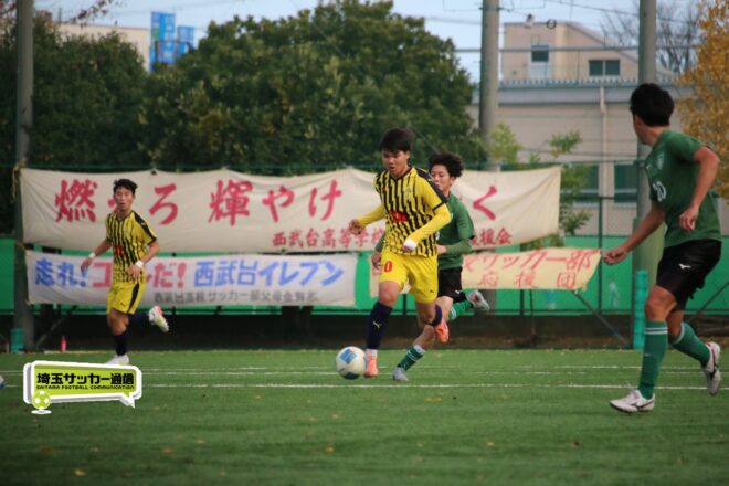 首位・成徳深谷を2ポイント差で追う西武台Ⅱは、MF中川晴斗(3年)が多くボールに関わりながら左右への展開や運び出し。左SB浅井風俄(3年)が果敢に攻撃参加してチャンスを作る。