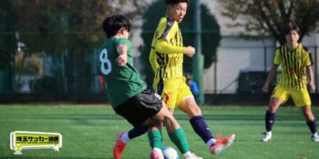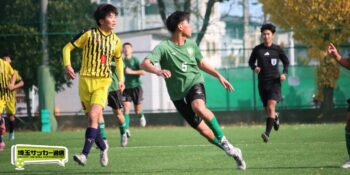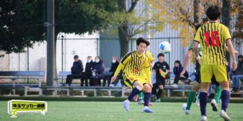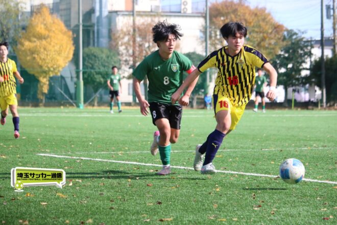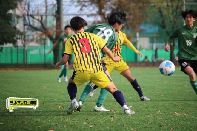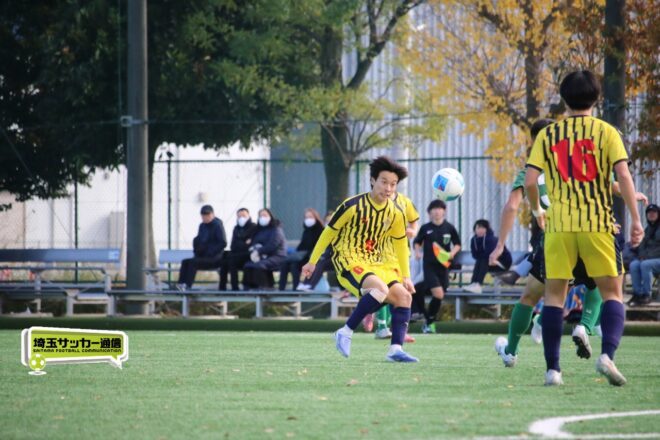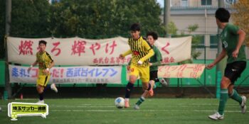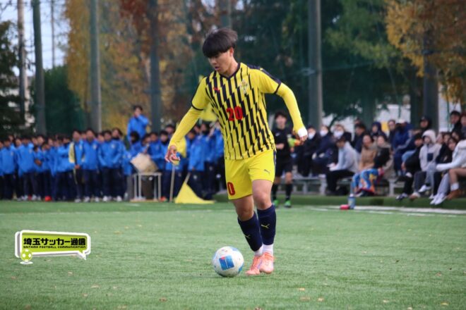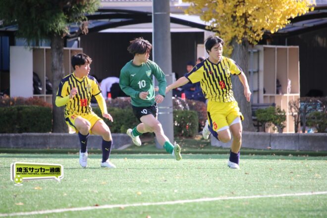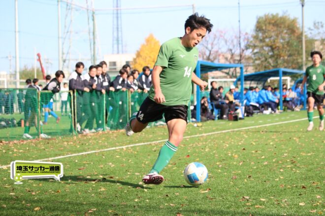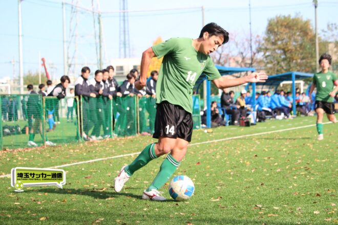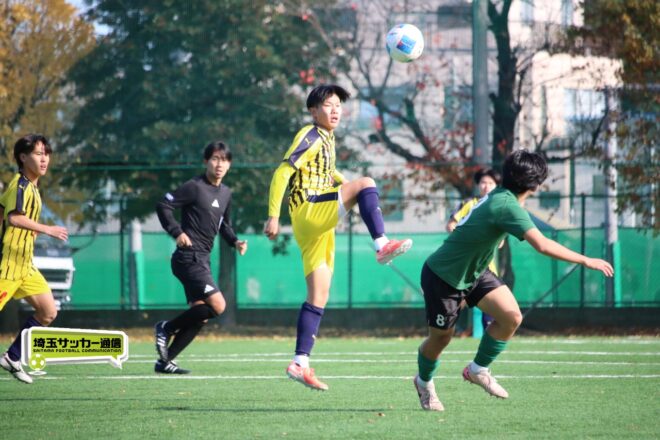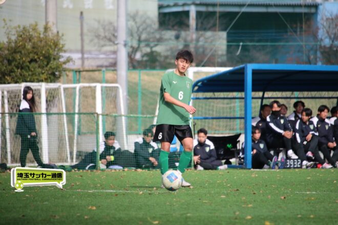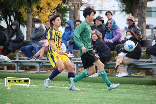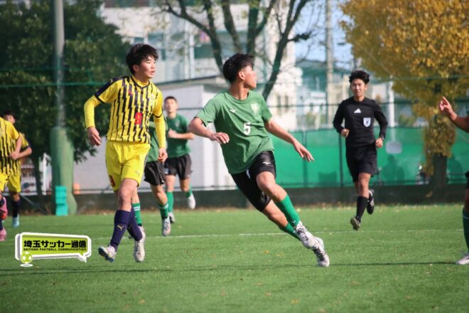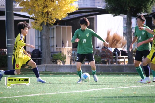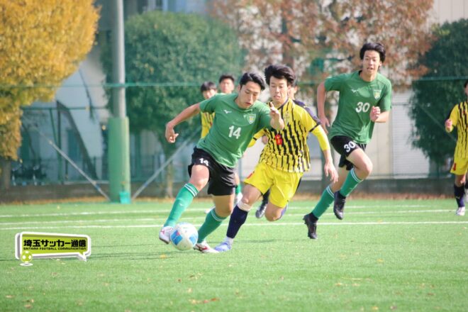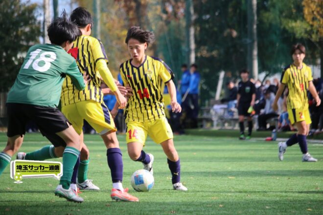 首位・成徳深谷を2ポイント差で追う西武台Ⅱは、MF中川晴斗(3年)が多くボールに関わりながら左右への展開や運び出し。左SB浅井風俄(3年)が果敢に攻撃参加してチャンスを作る。