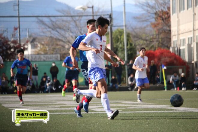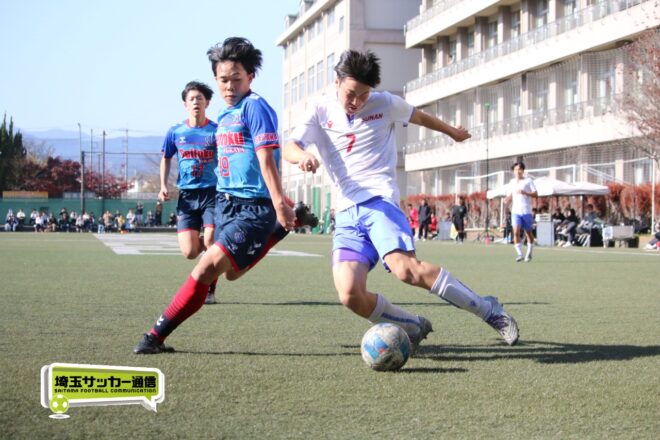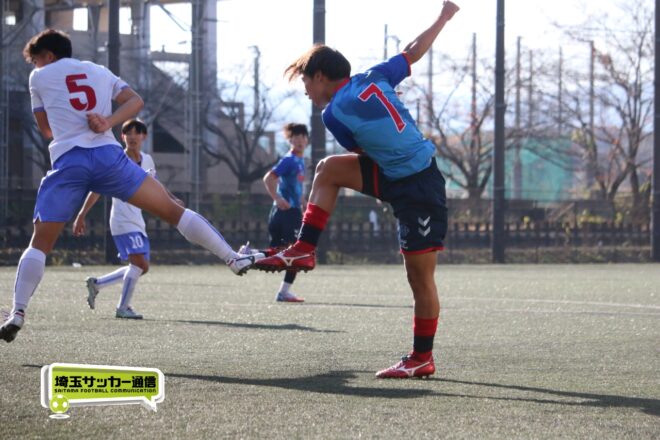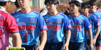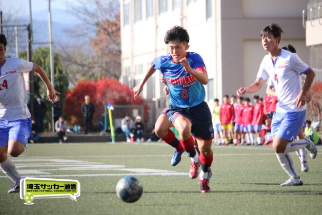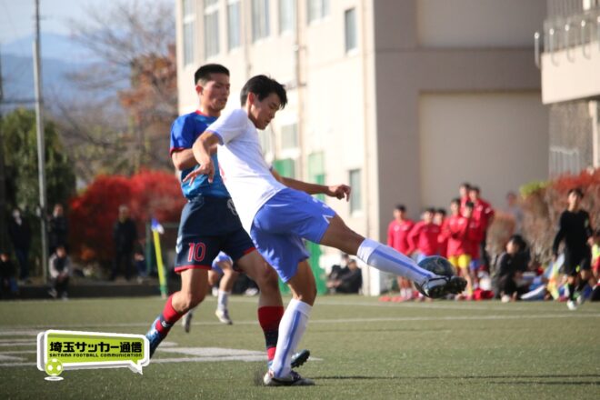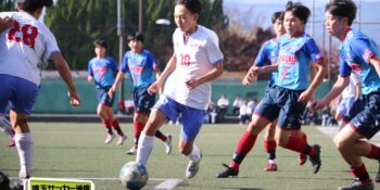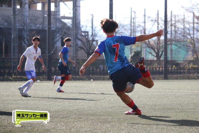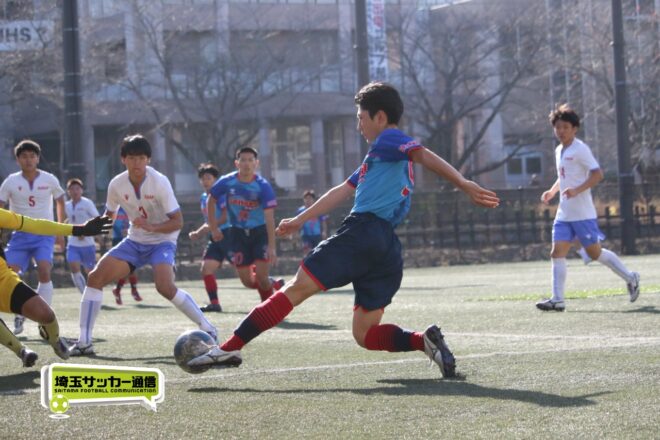 さらに武南は15分、渡辺のパスから10番MF有川達琉(3年)が沈めて3点目。成徳深谷は鯨井が強シュートで狙い、33分には右CKのこぼれ球にMF菅井陽斗(3年)が右足を一閃して1点を返したが、反撃もここまで。武南が3-1で成徳深谷に勝利し、勝ち点3を獲得した。