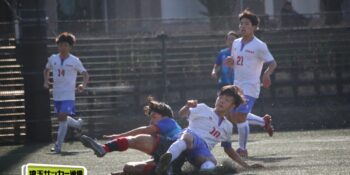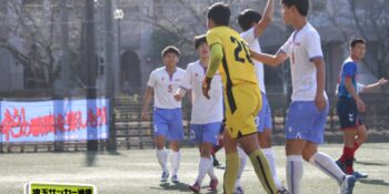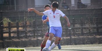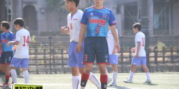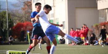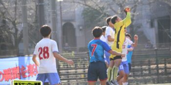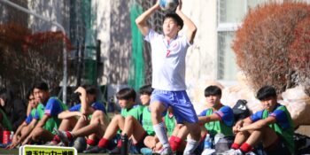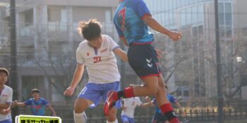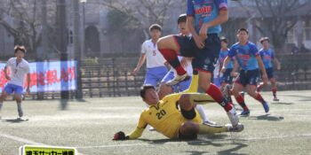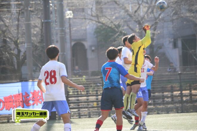 27分、MF松尾泰希(2年)の右CKに空中戦に絶対の強さを持つDF横山大平(3年)のヘディングが枠を捉えたが、ゴールカバーに入ったDF田中理月(3年)が頭でクリア。36分には再びセットプレーから横山のヘディングが強襲したが、ここは笠井がファインセーブで防いだ。