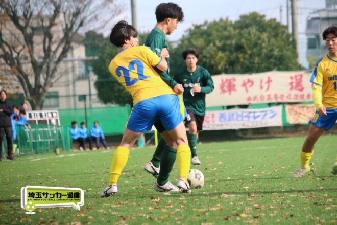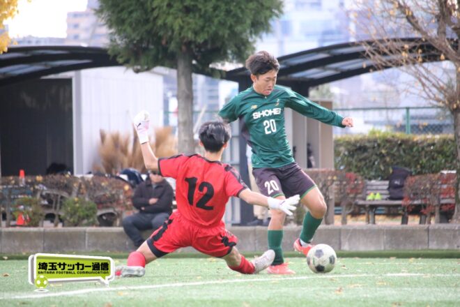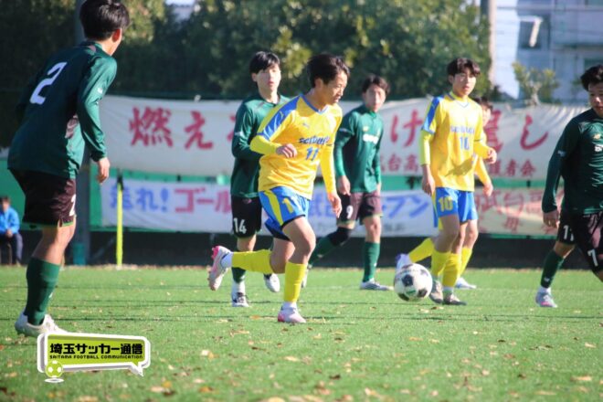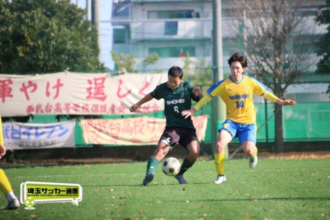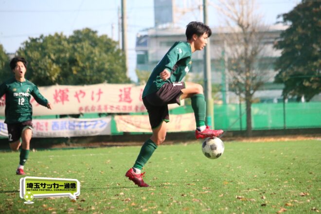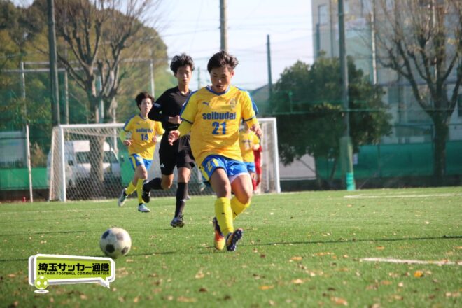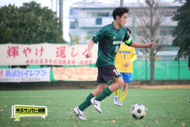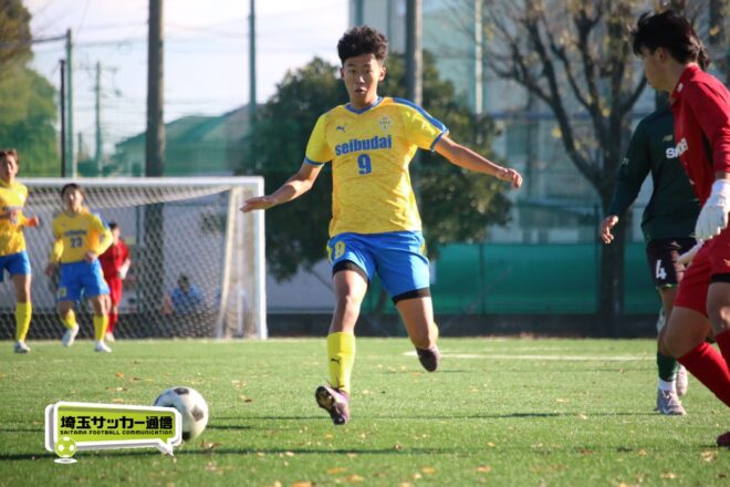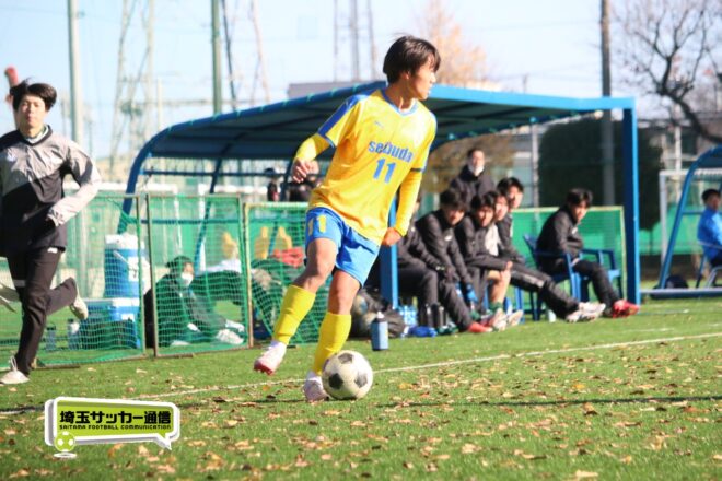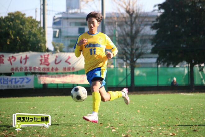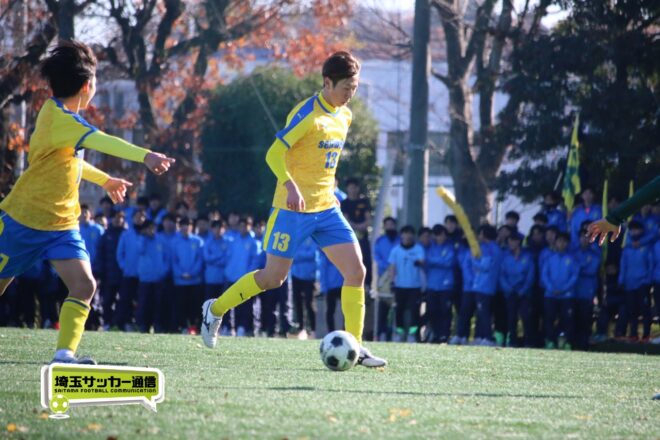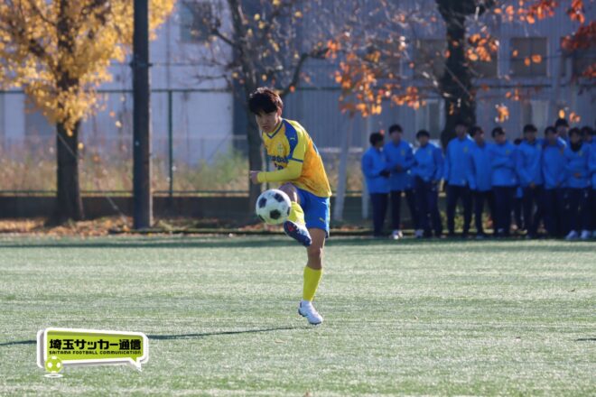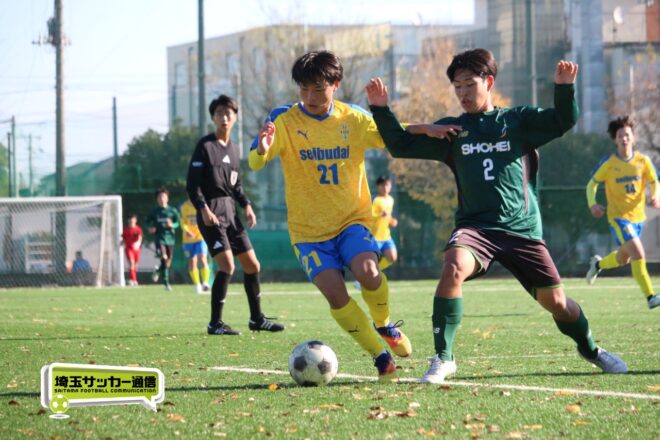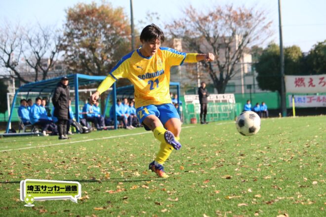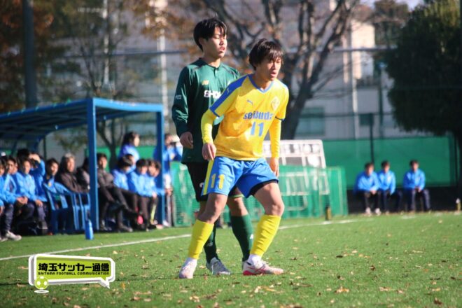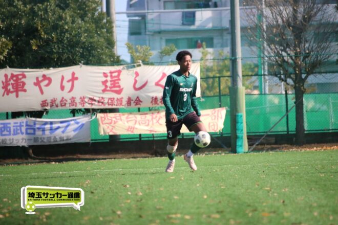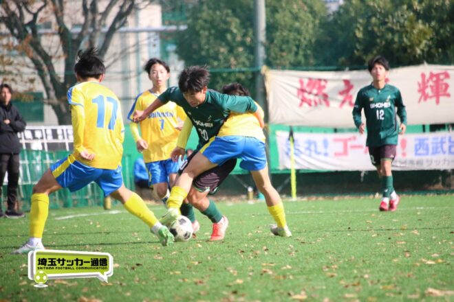 17分にはリーグトップの14得点をマークするFW小山内奏多(2年)を投入する。19分にはその小山内がいきなりチャンス。相手DFのバックパスをさらうと、さらにキーパーも交わす。決定的かと思われたが、西武台DF桒原魁(2年)がカバーに入り決死のブロックを見せた。