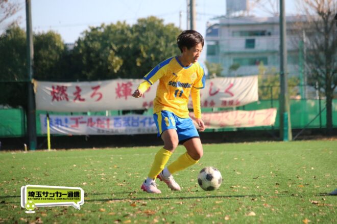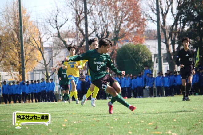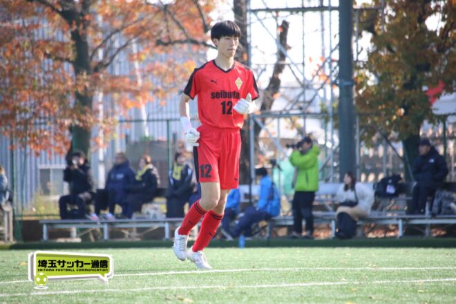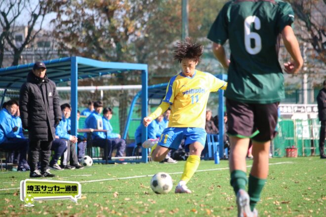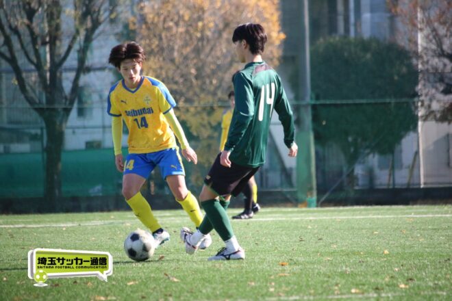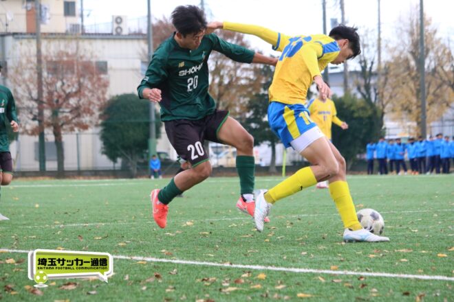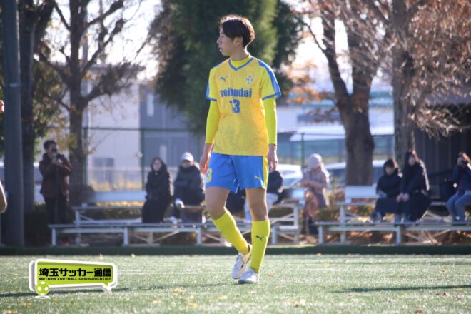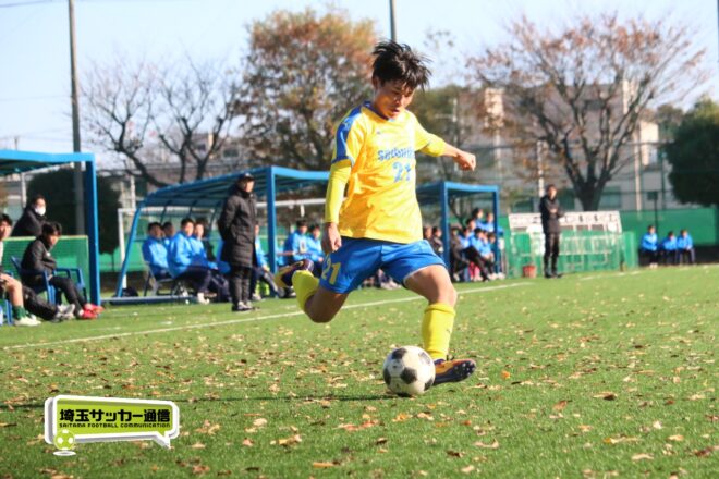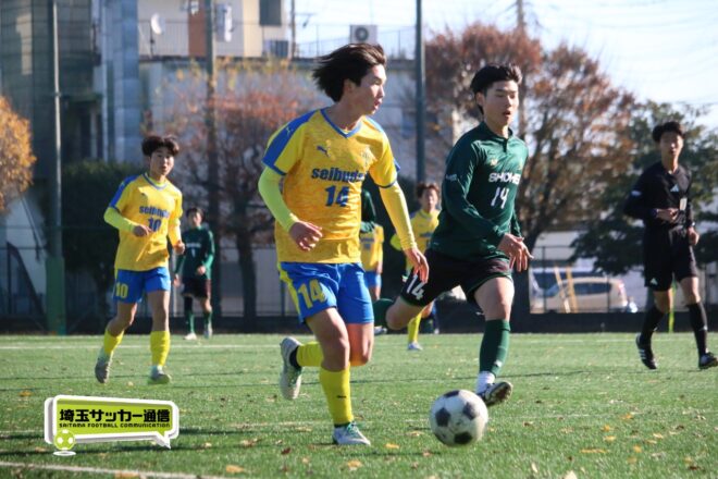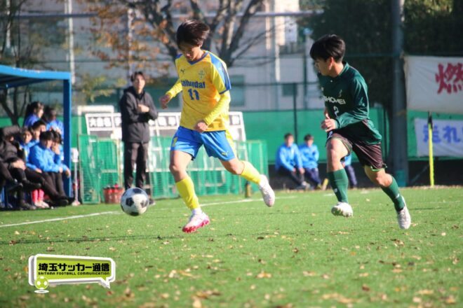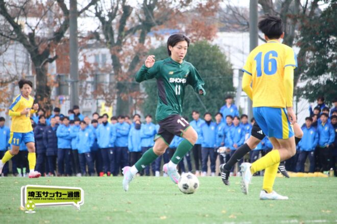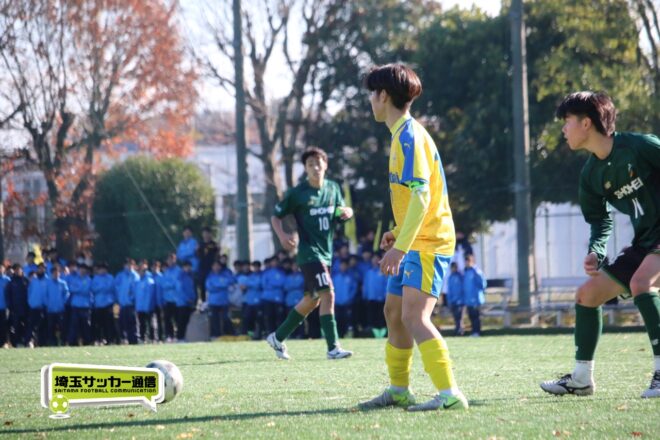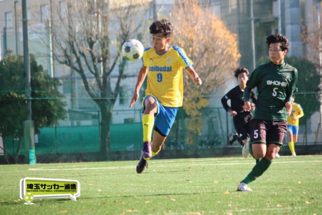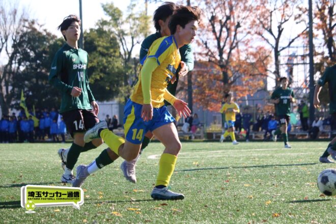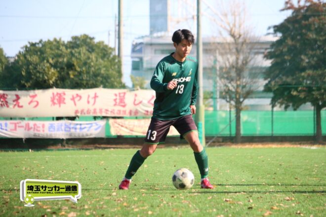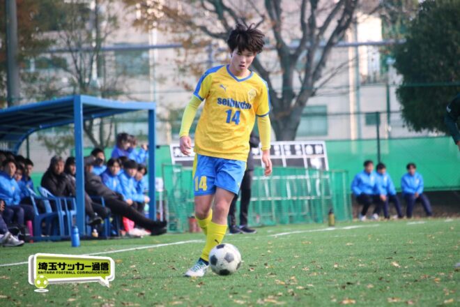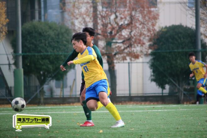 17分にはリーグトップの14得点をマークするFW小山内奏多(2年)を投入する。19分にはその小山内がいきなりチャンス。相手DFのバックパスをさらうと、さらにキーパーも交わす。決定的かと思われたが、西武台DF桒原魁(2年)がカバーに入り決死のブロックを見せた。