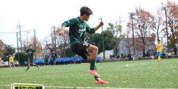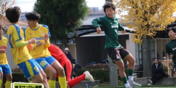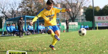 それでも昌平は21分、途中出場の右SB武田翔太郎(3年)のグラウンダーのクロスに平野がニアに飛び込んでシュート。キーパーが弾いたこぼれ球を小山内が詰めて同点に追いついた。