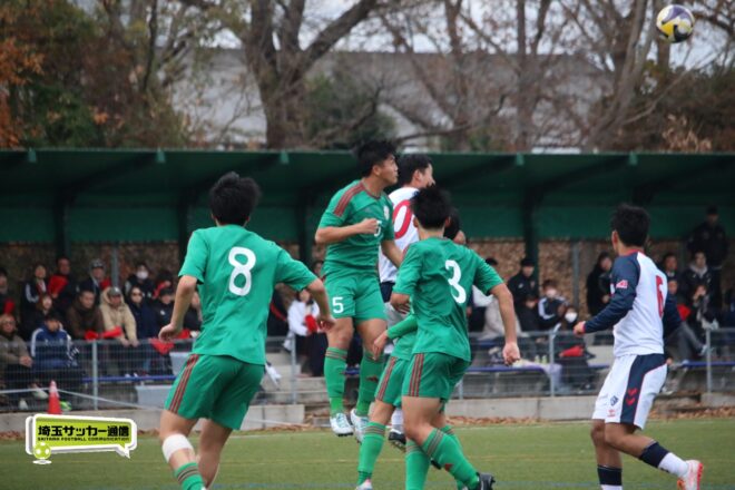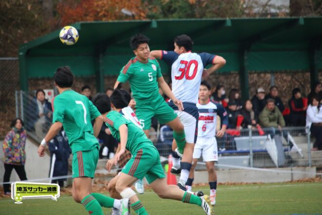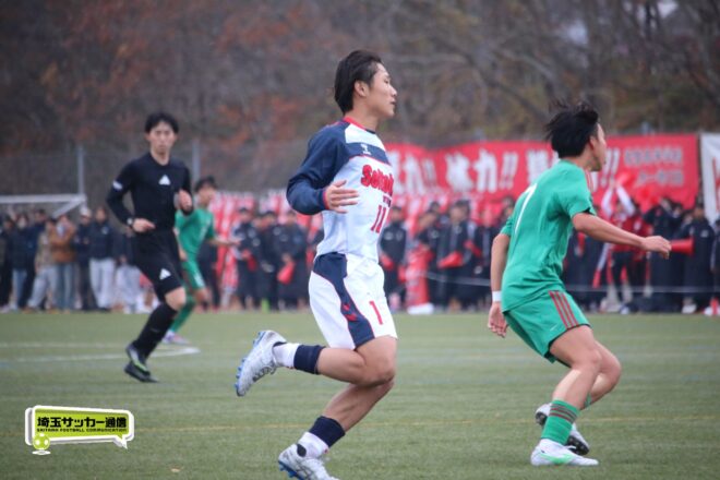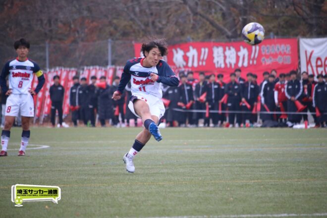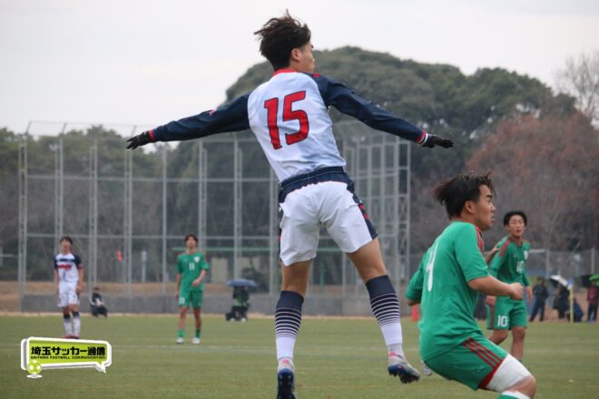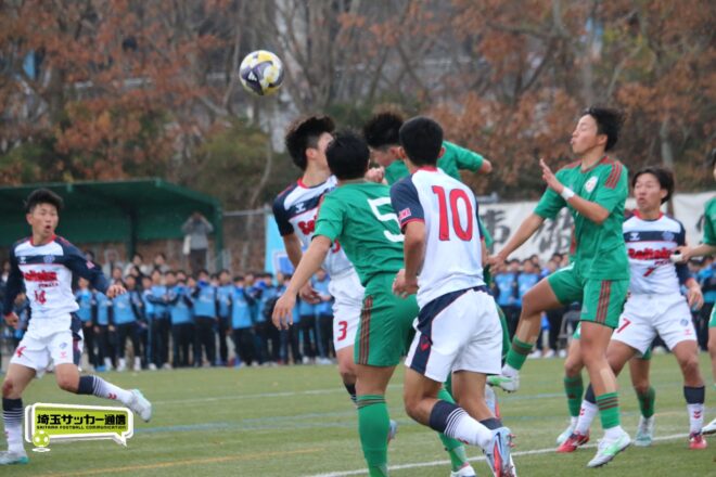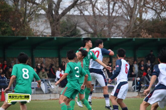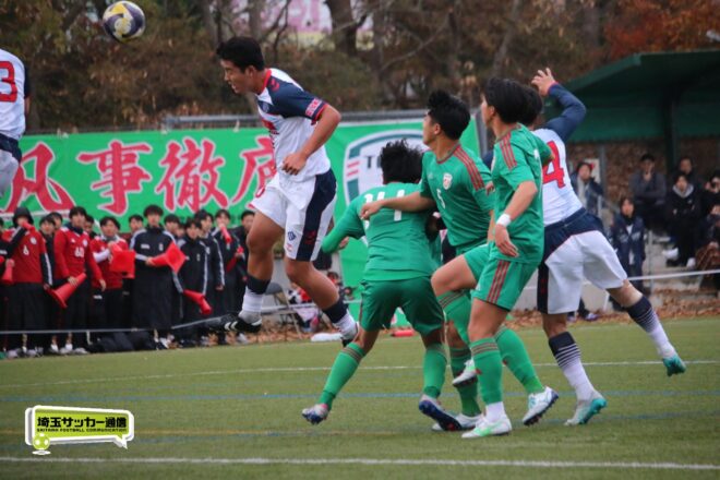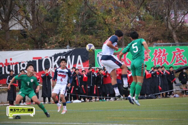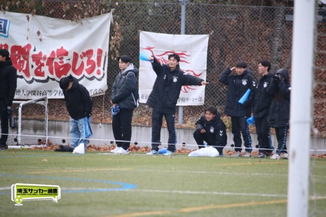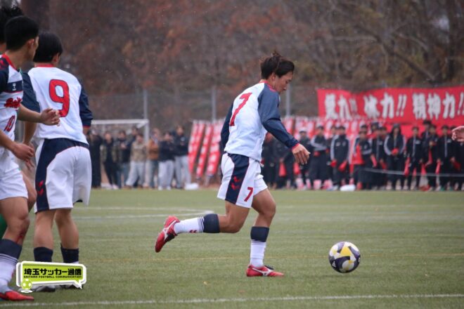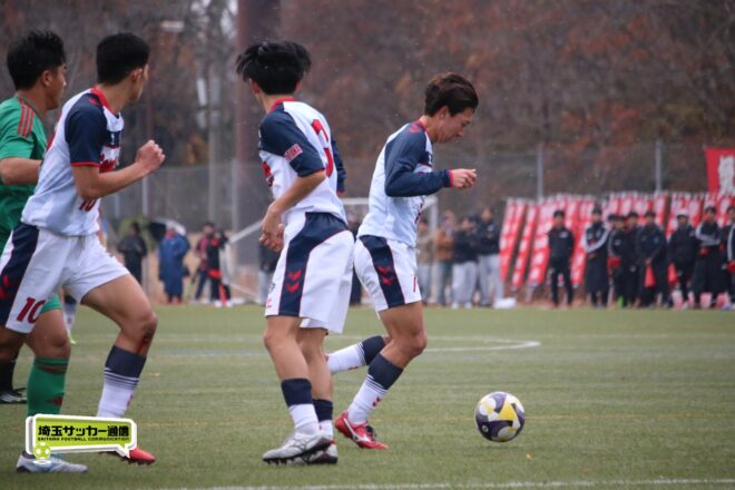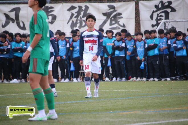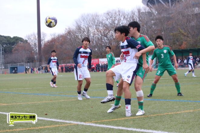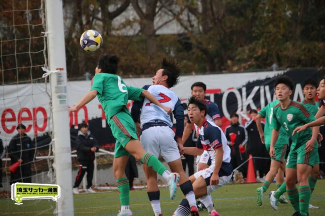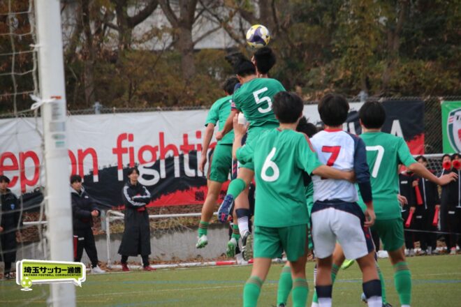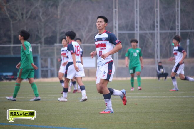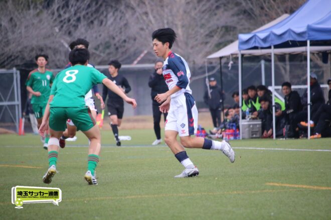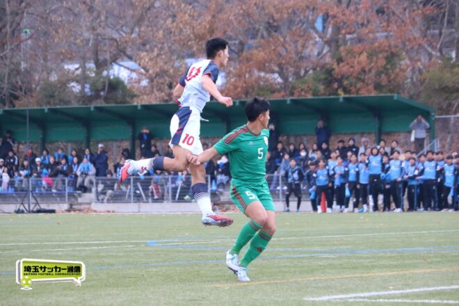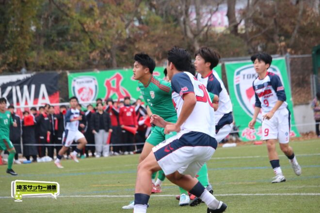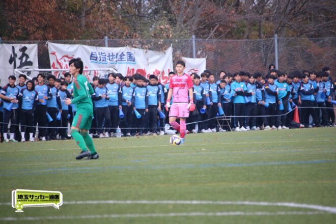 中盤ではMF白川成夢(3年)が選手権予選初戦となった川越城西戦以来のスタメンに復帰。MF朝烏真大(3年)主将、MF松尾泰希(2年)、MF鯨井遥翔(3年)のトライアングルでセカンドボールに先に触ることを徹底し、前線では188cmの長身FW 頓宮琥太郎(3年)に当てながら、スピードに優れるFW川上稜介(3年)が裏を狙い、そこでセットプレーを獲得する。
