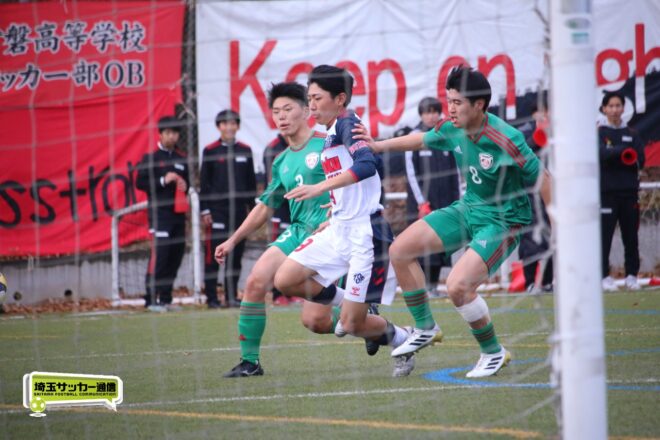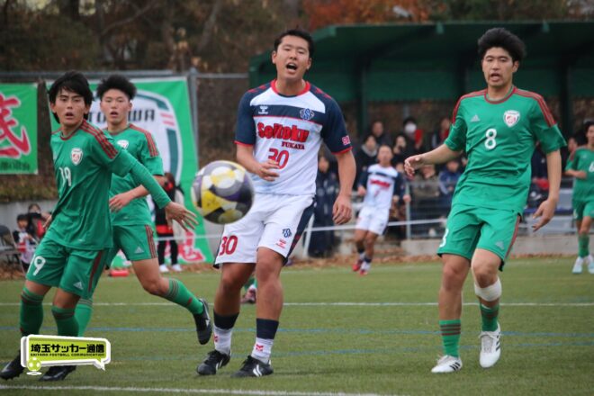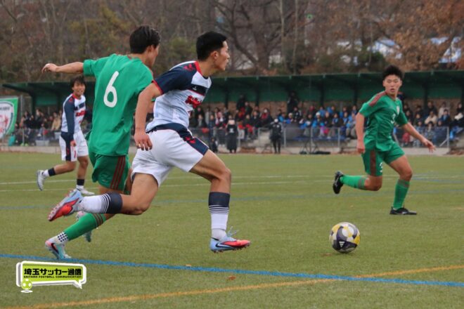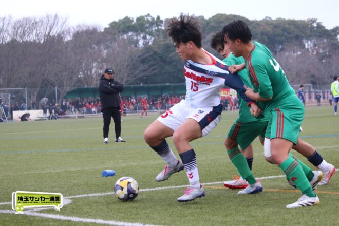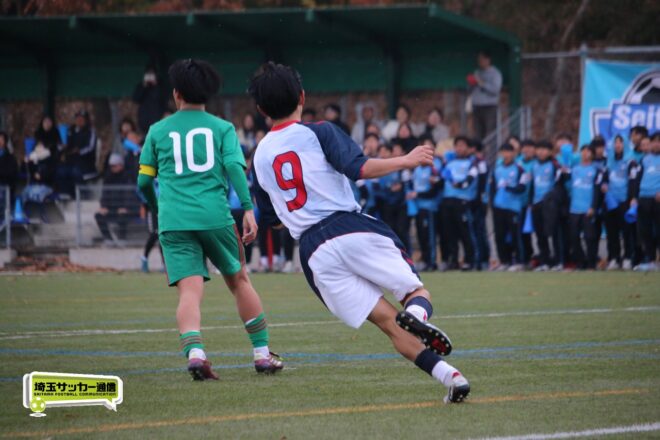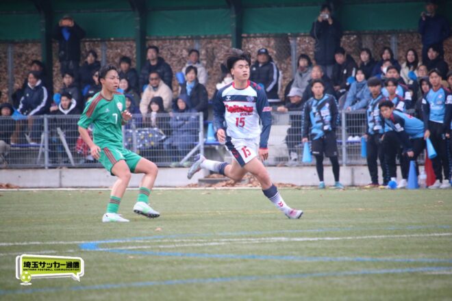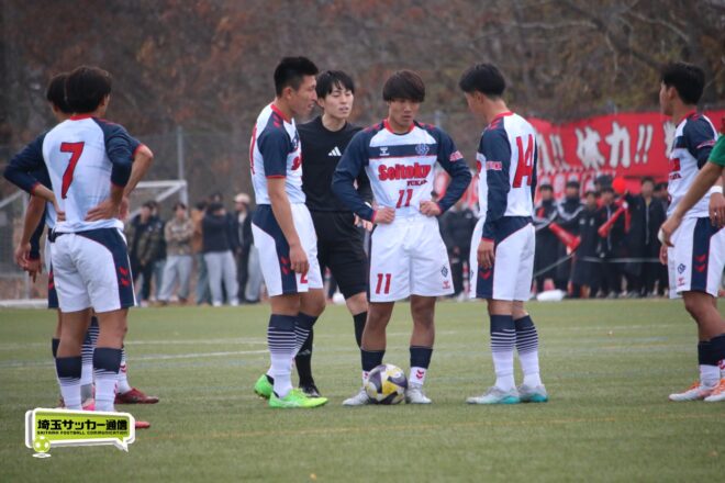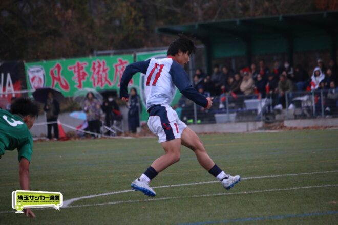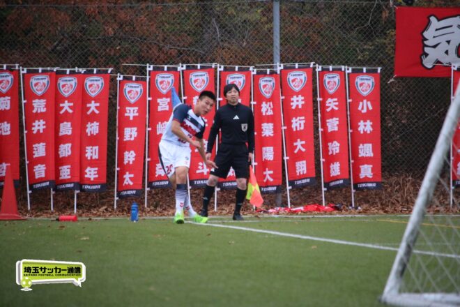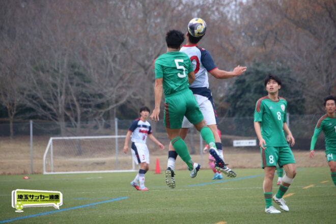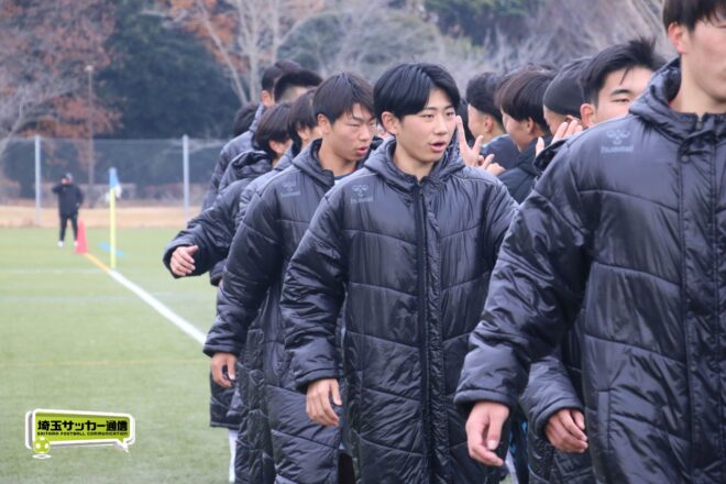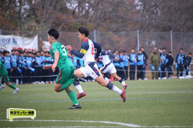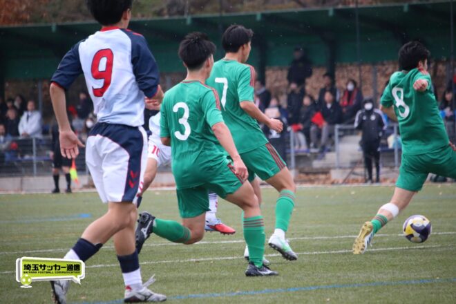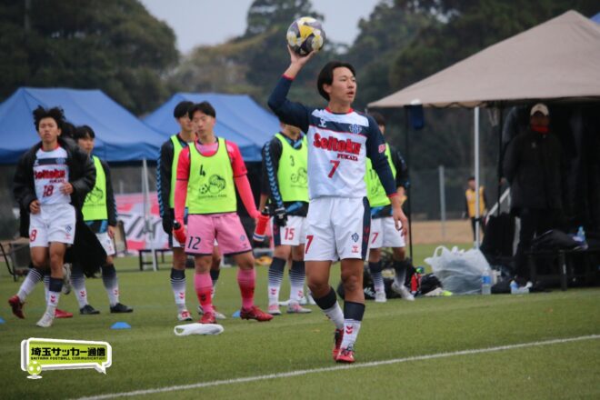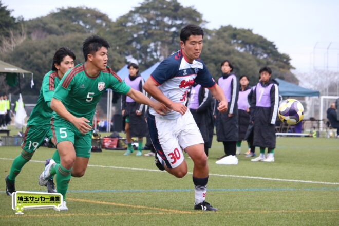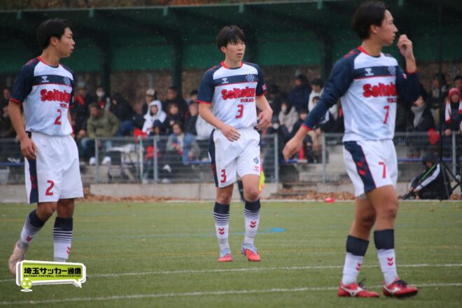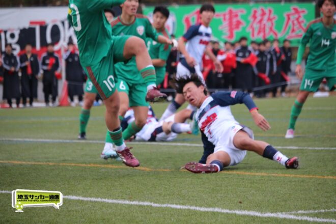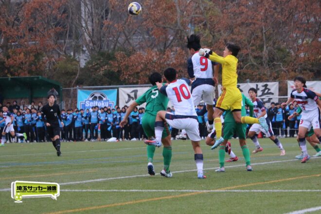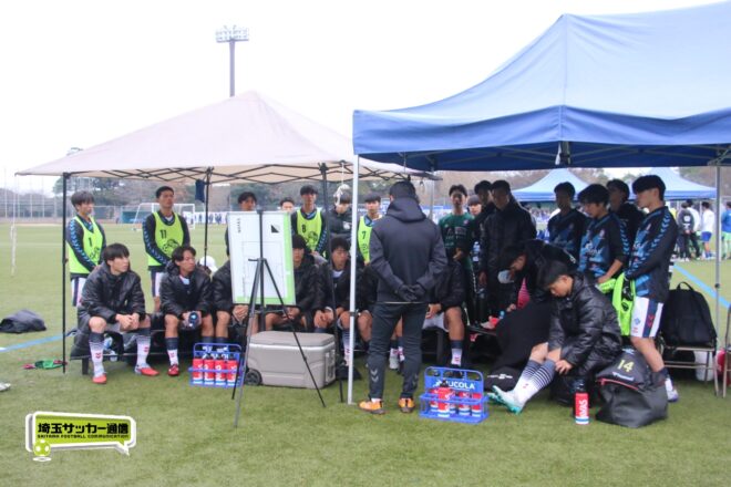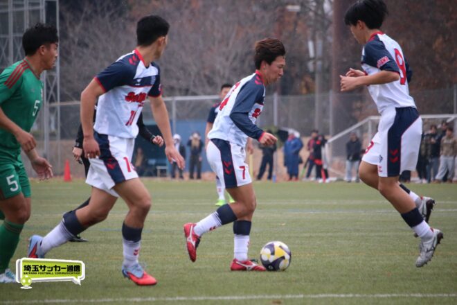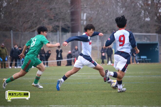 中盤ではMF白川成夢(3年)が選手権予選初戦となった川越城西戦以来のスタメンに復帰。MF朝烏真大(3年)主将、MF松尾泰希(2年)、MF鯨井遥翔(3年)のトライアングルでセカンドボールに先に触ることを徹底し、前線では188cmの長身FW 頓宮琥太郎(3年)に当てながら、スピードに優れるFW川上稜介(3年)が裏を狙い、そこでセットプレーを獲得する。